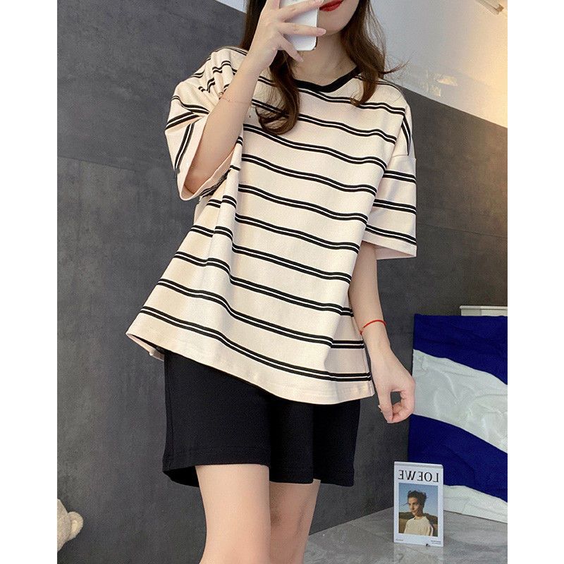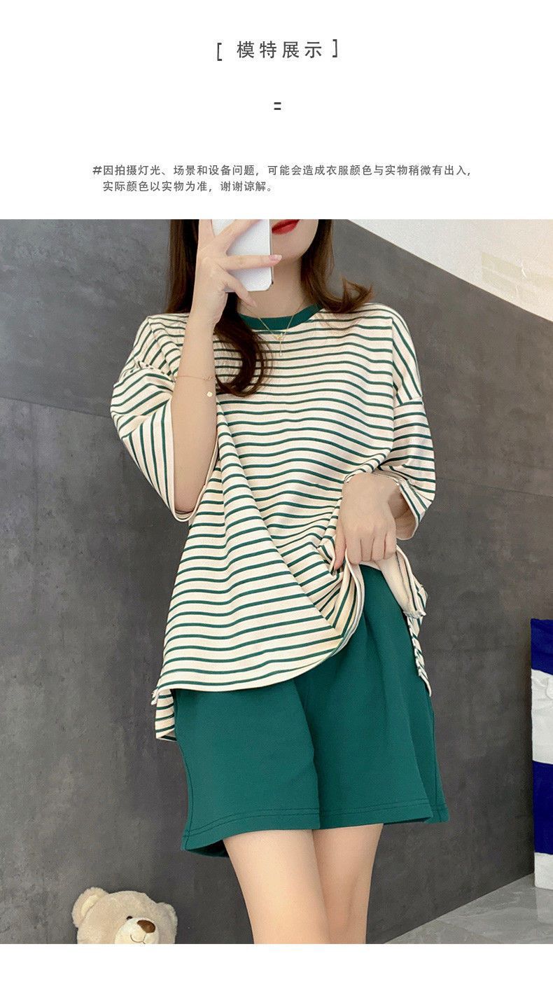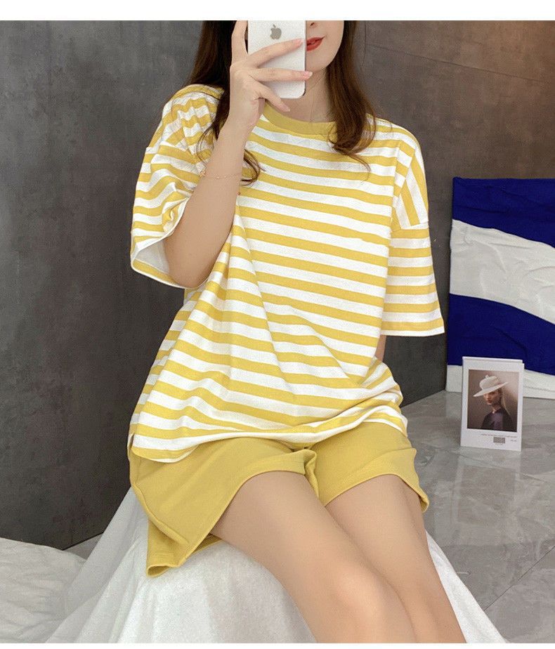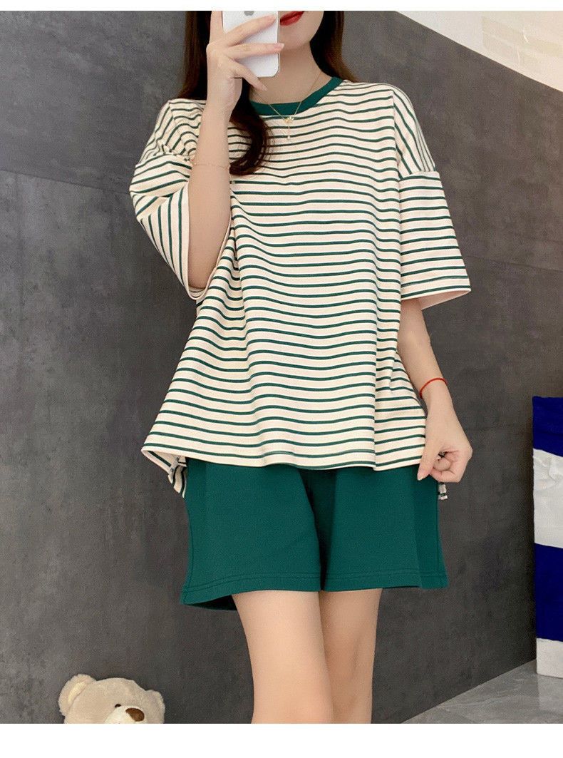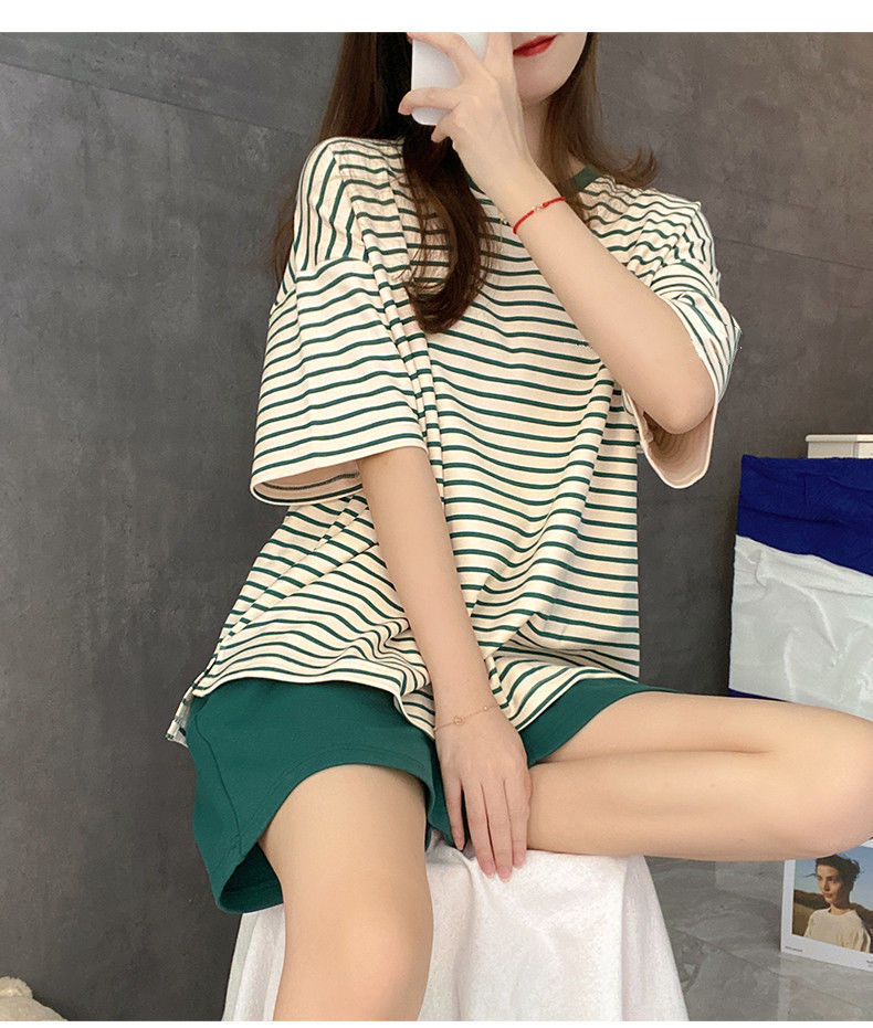5XL 크기 느슨한 패드 잠옷 여성 여름 반팔 줄무늬 학생 캐주얼 여름 홈 의류 세트스토어 가기