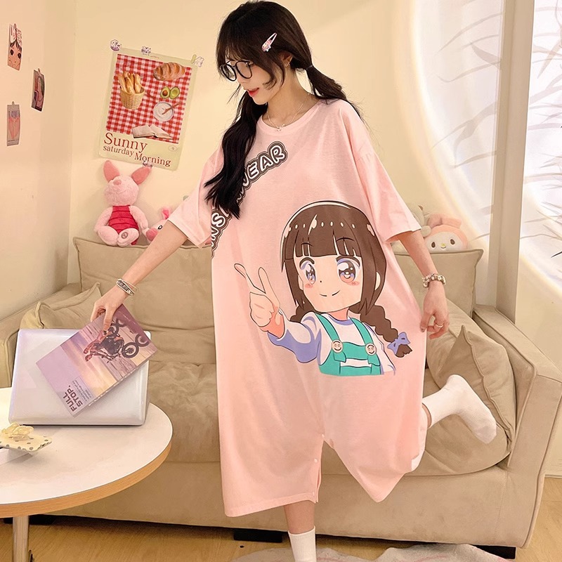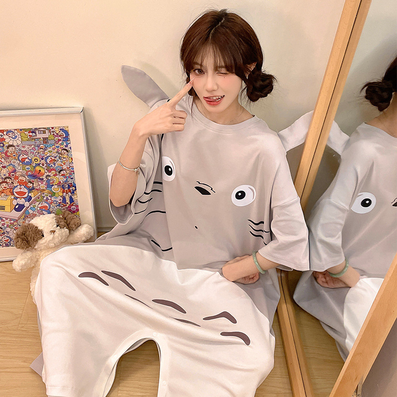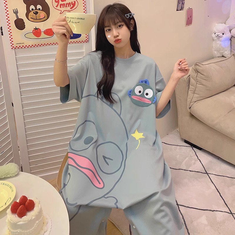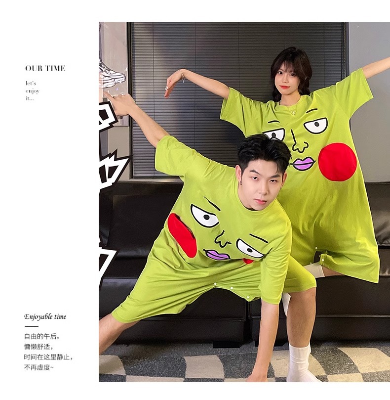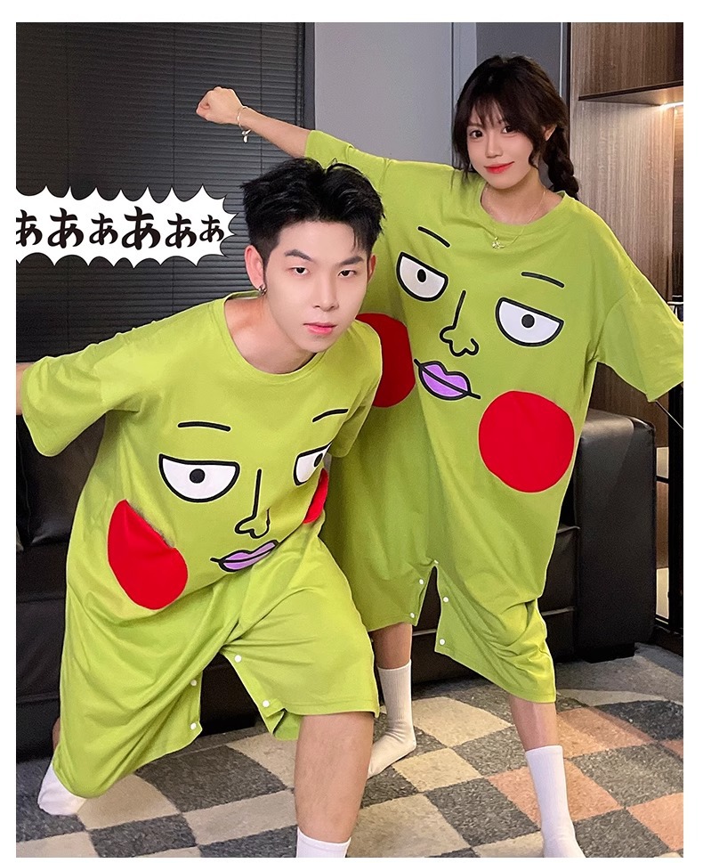 딤플 결합 된 잠옷 여성 여름 짧은 소매 면화 만화 학생 플러스 사이즈 귀여운 재미있는 커플 잠옷 남성스토어 가기