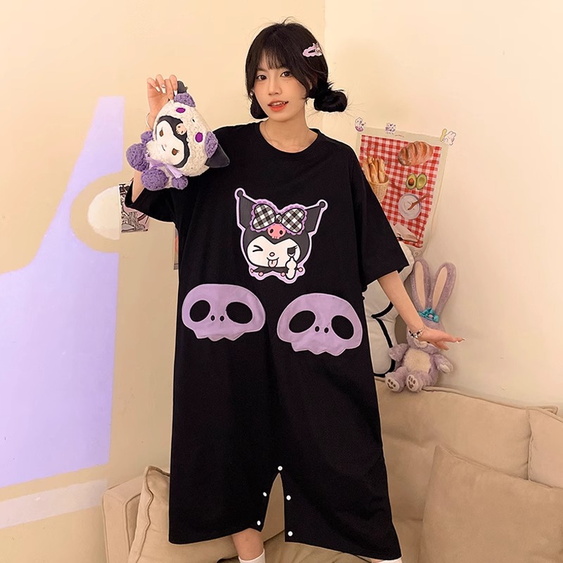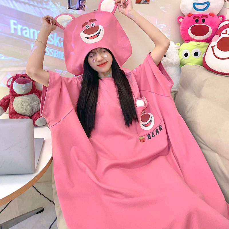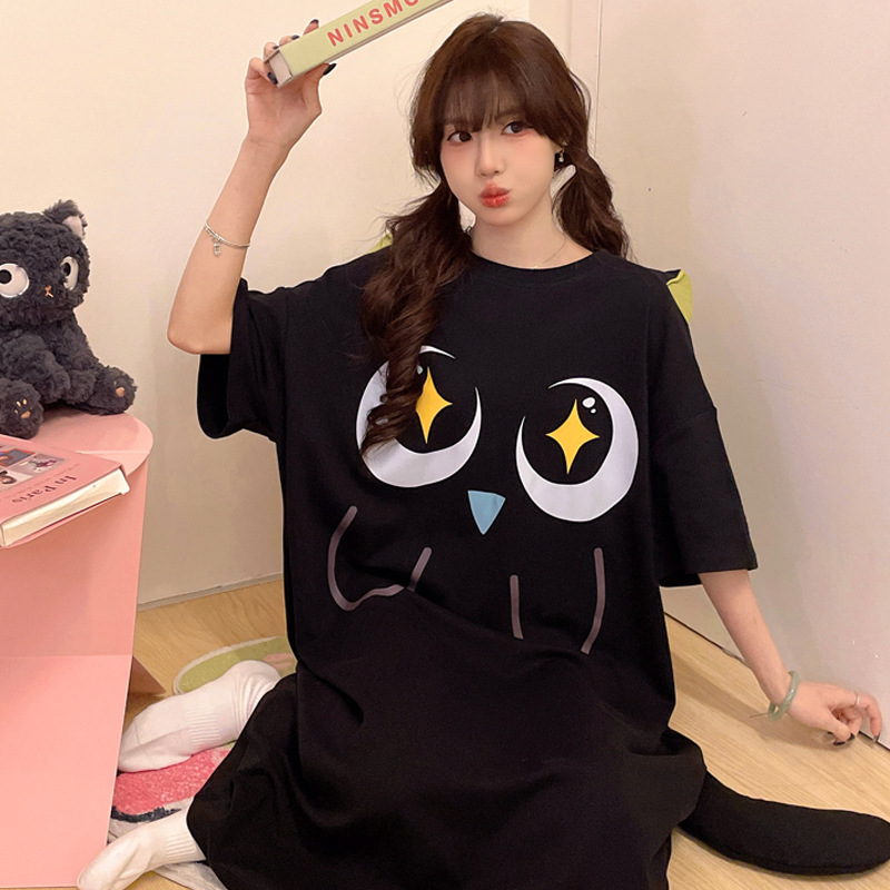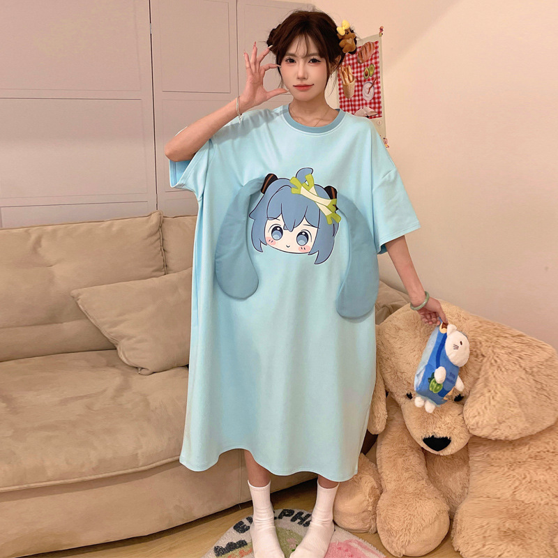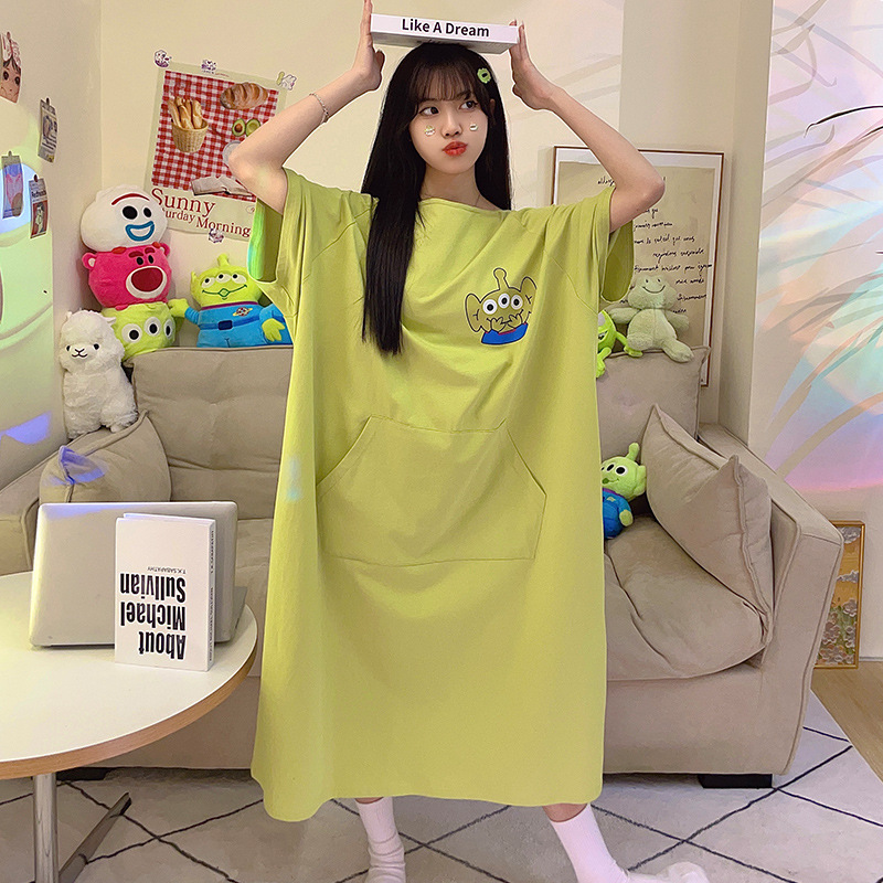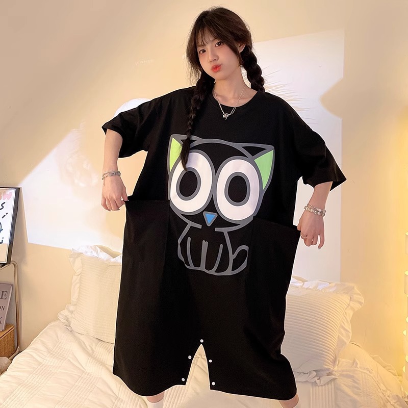 딤플 결합 된 잠옷 여성 여름 짧은 소매 면화 만화 학생 플러스 사이즈 귀여운 재미있는 커플 잠옷 남성스토어 가기