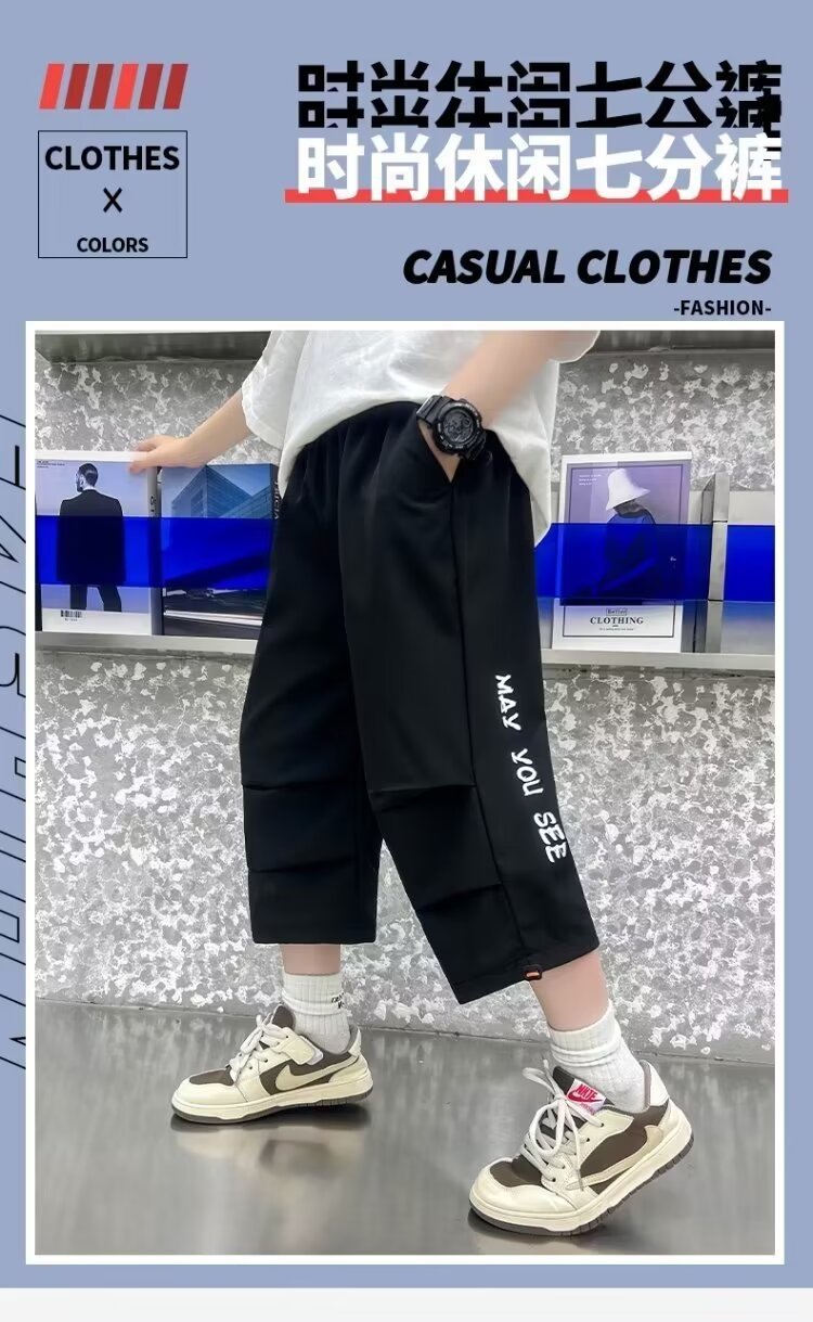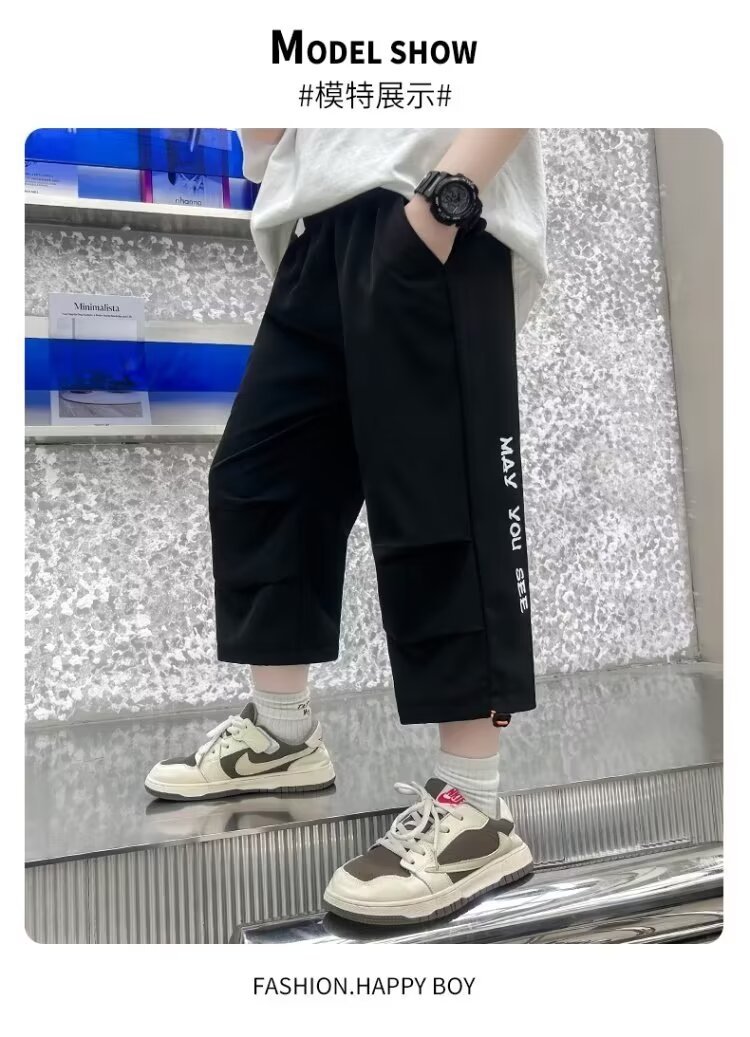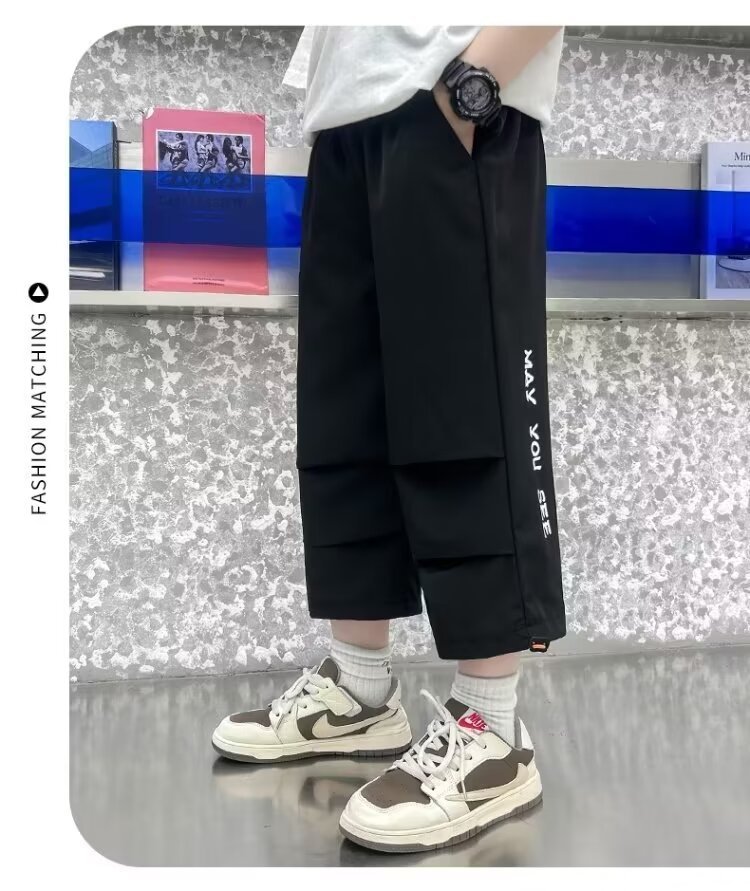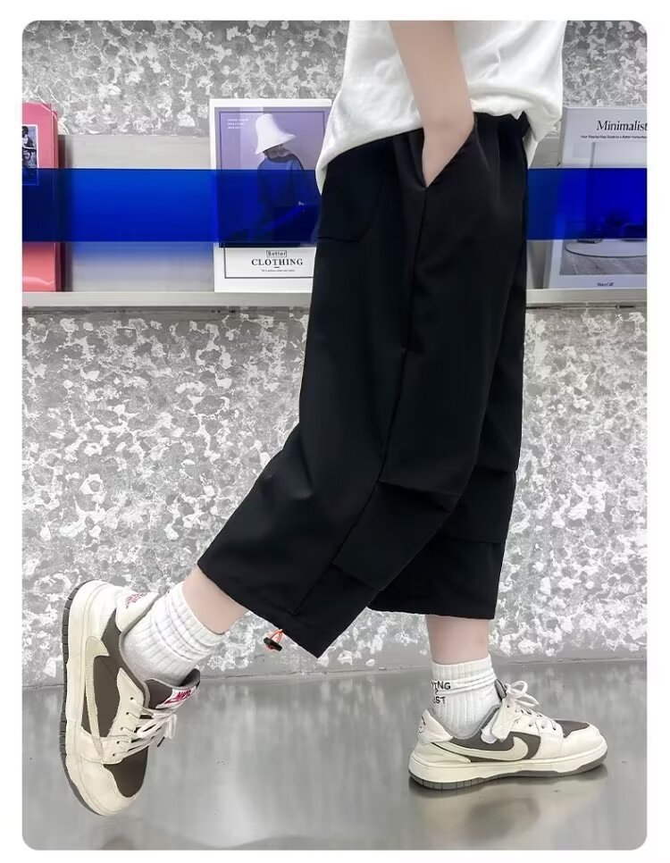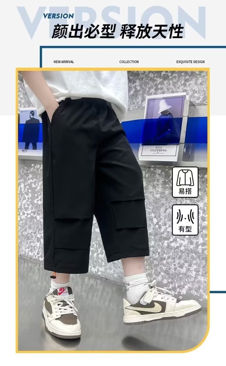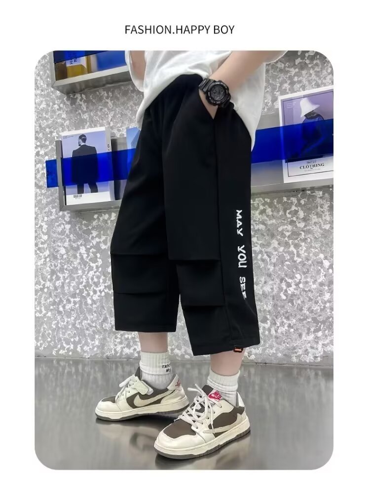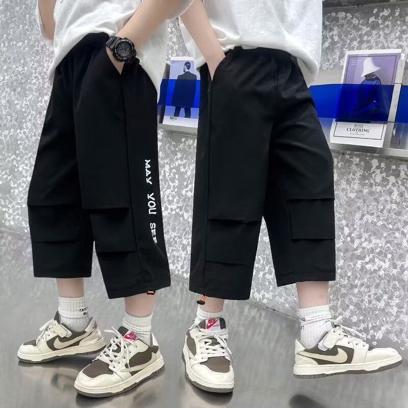 소년 여름 얇은 카프리 바지 큰 어린이 바지 빠른 건조 아이스 실크 반바지 어린이 스포츠 바지 소년 여름 패션