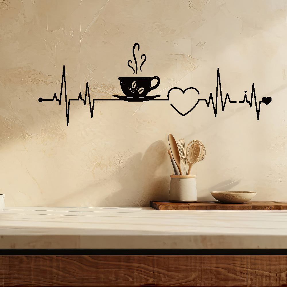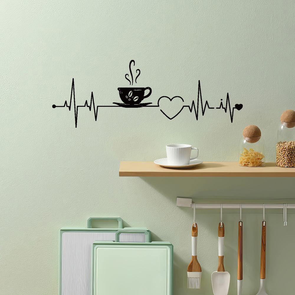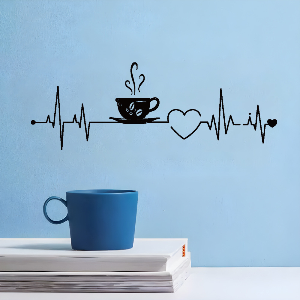 부엌 거실 커피 숍 레저 지역 벽 장식에 적합한 창조적 인 커피 사랑 ECG 로고 벽 스티커
