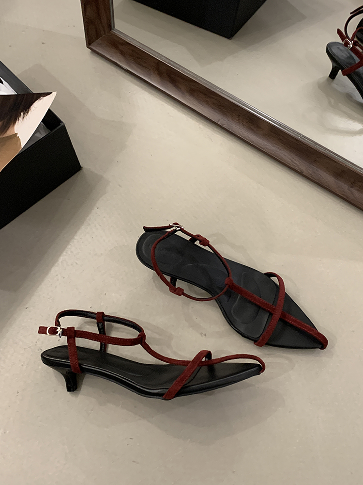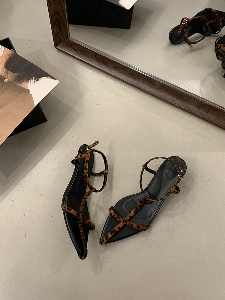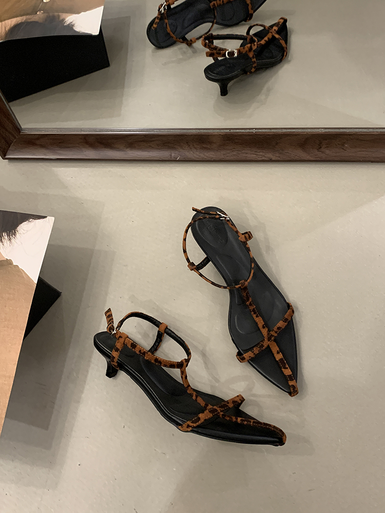 짧은 발 뒤꿈치 레오파드 무늬 발가락이 열린 여성의 2025 여름 요정 스타일 원피스 샌들 조수를 가진 우아한 뾰족한 발가락 샌들스토어 가기