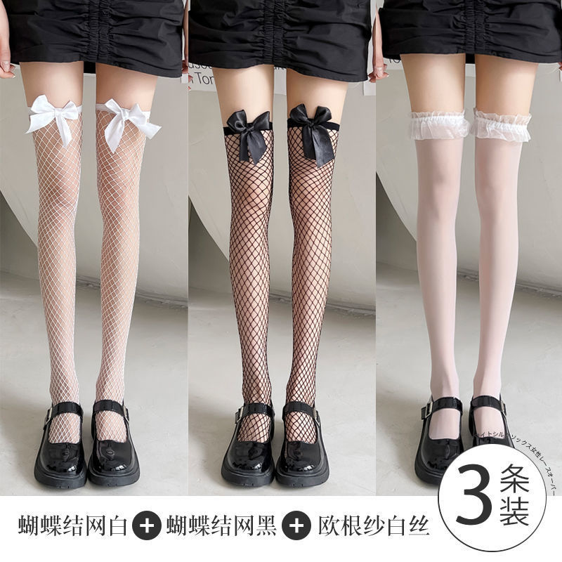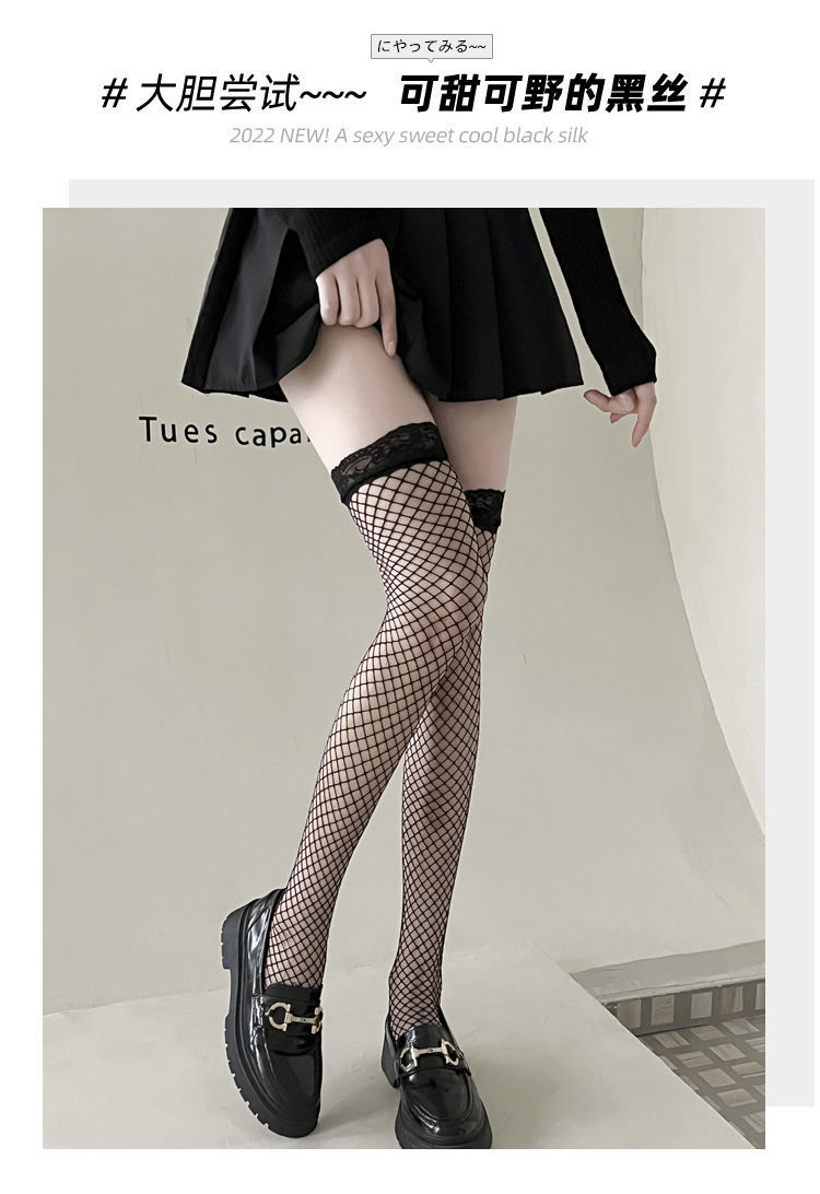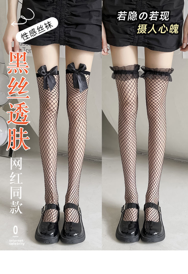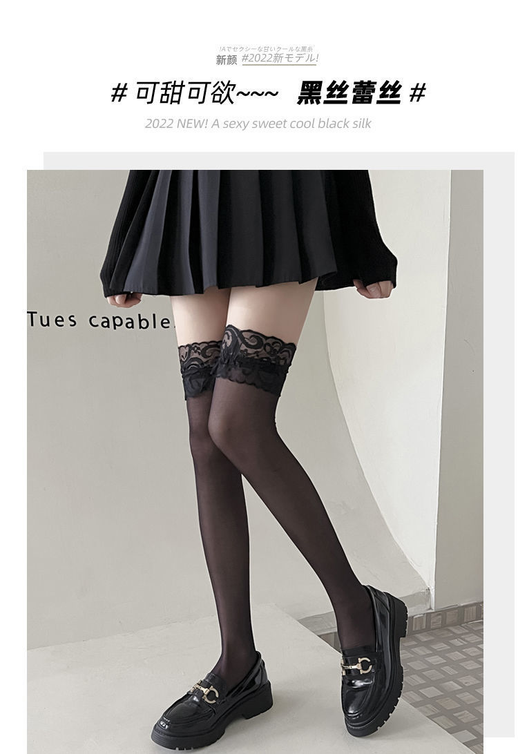 블랙 JK 활 블랙 실크 스타킹 여성 오버 더 무릎 얇은 긴 섹시한 레이스 스타킹 가을 및 겨울 생선 스타킹스토어 가기