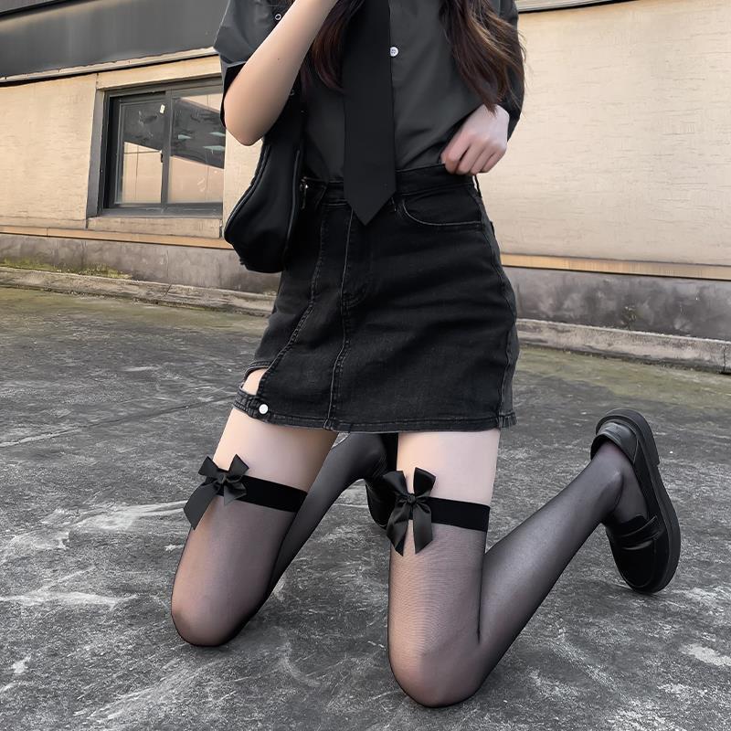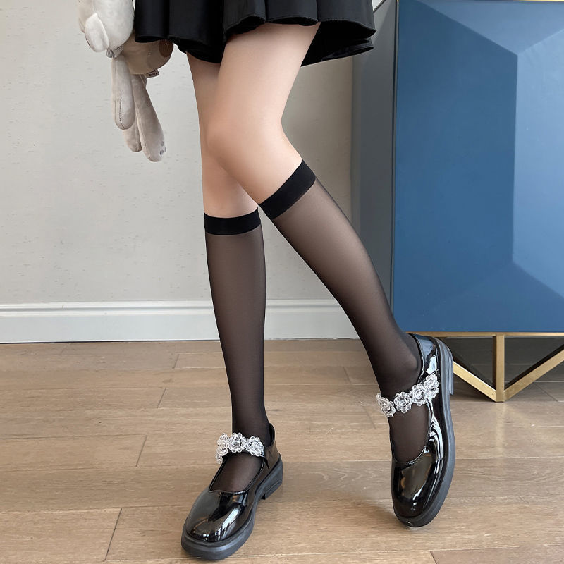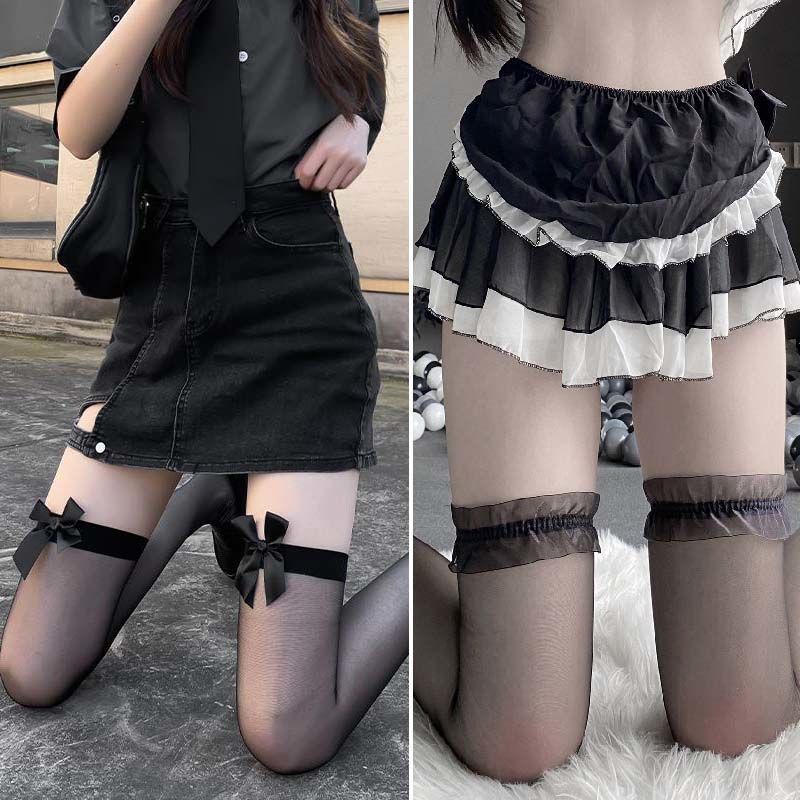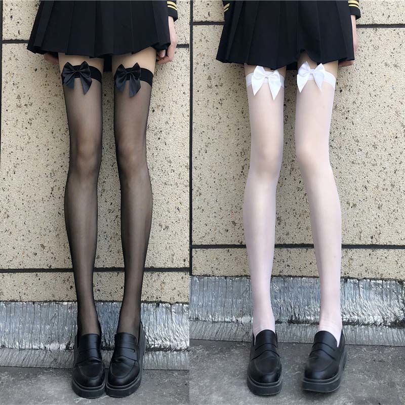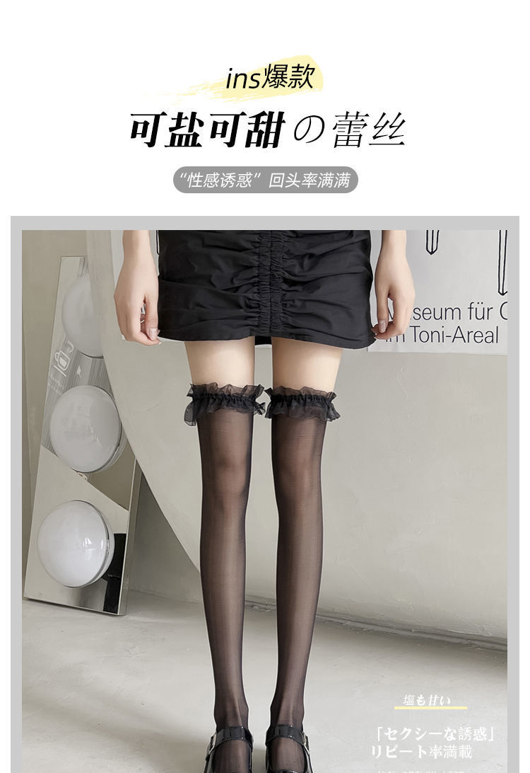 블랙 JK 활 블랙 실크 스타킹 여성 오버 더 무릎 얇은 긴 섹시한 레이스 스타킹 가을 및 겨울 생선 스타킹스토어 가기