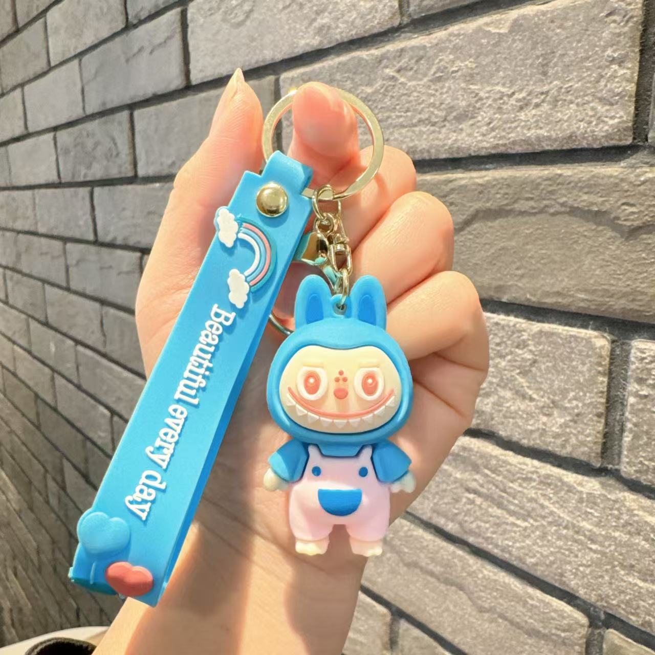 국경 간 만화 귀여운 랩 루브 키 체인 입체 인형 학교 가방 펜던트 자동차 열쇠 고리 작은 선물 펜던트