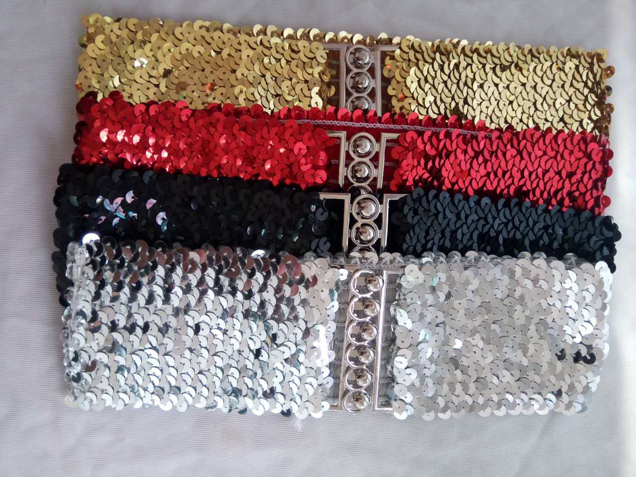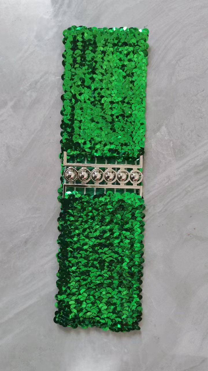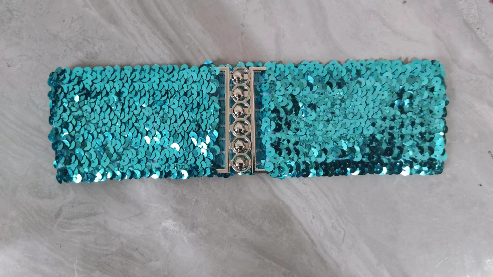 유럽과 미국 스타일의 스팽글 탄성 벨트 여성 버클 벨트 미러 스팽글 벨트 패션 벨트 제조 업체스토어 가기