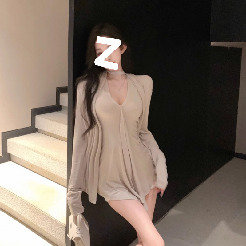 패션 세트 우아한 느슨한 긴팔 카디건 재킷 여성용 봄웨어 스파이스 걸스 카미솔 탑 투피스 세트