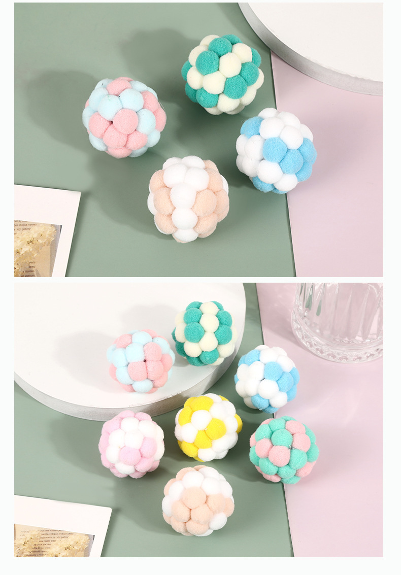 고양이 마카롱 봉제 공 장난감 애완 동물 탄성 벨 당 공 셀프 안녕 공 테이 고양이 화려한 양모 공