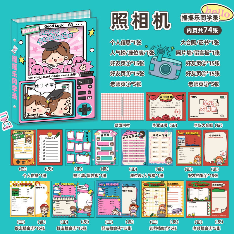 동요 음악 Gashapon 기계 동급생 기록 2025 새로운 창조적 인 재미있는 학생 졸업 기념 책 높은 연가 가치 주소록