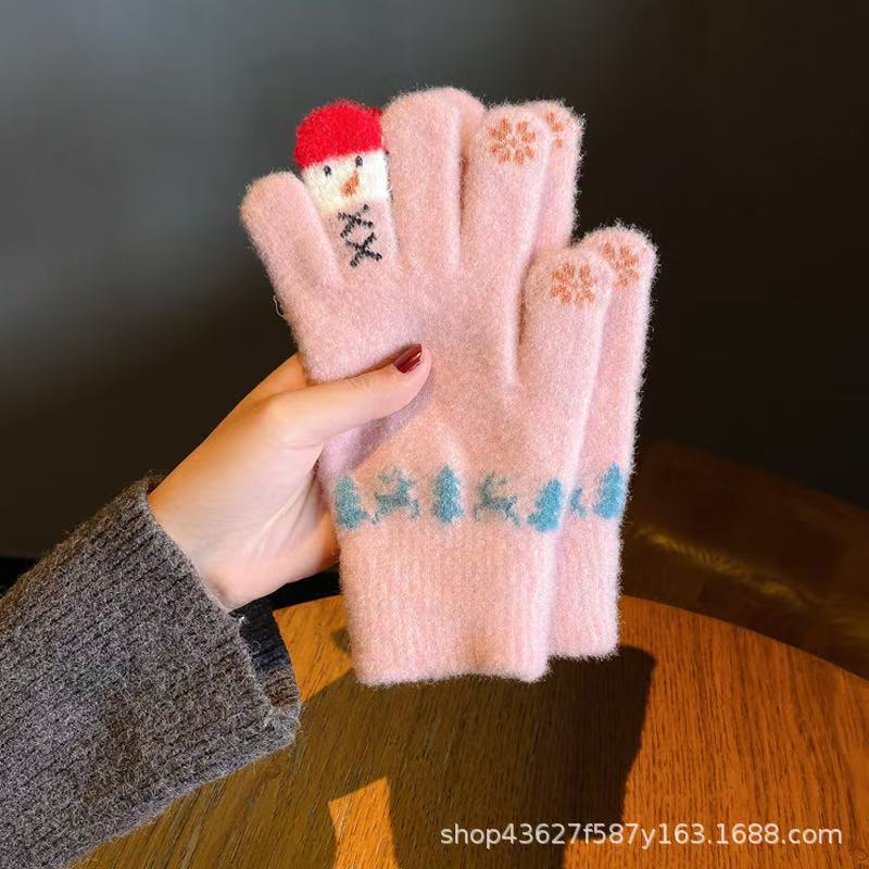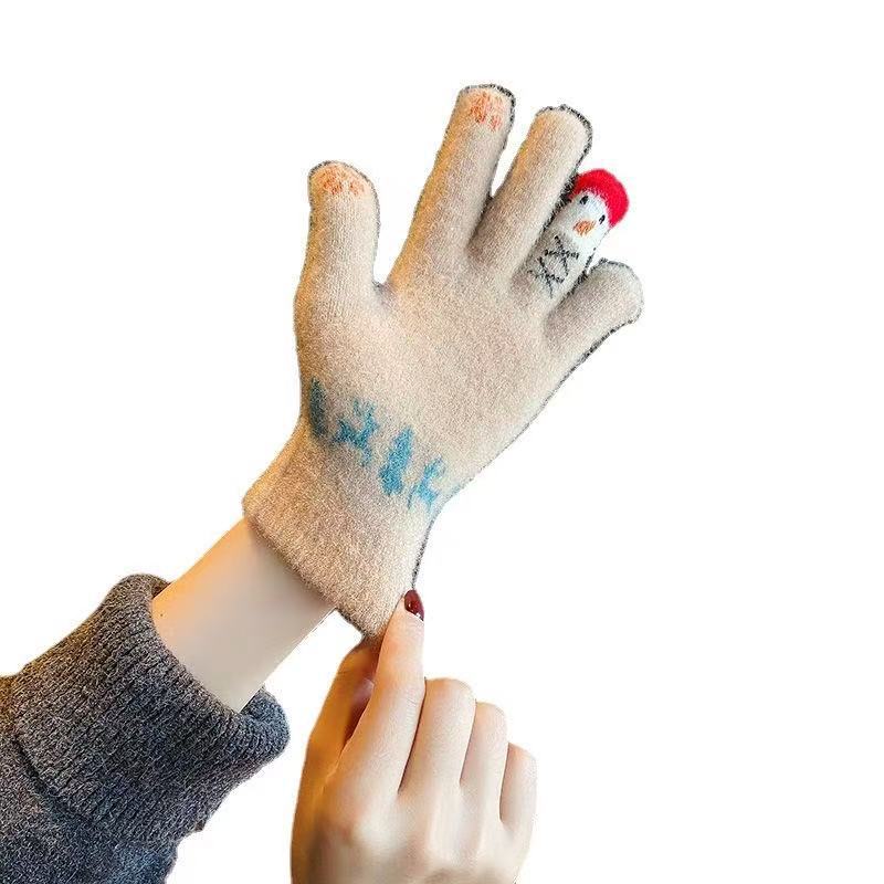 겨울 양모 장갑 귀여운 눈사람 니트 터치 스크린 두꺼운 따뜻한 라이더 다섯 손가락 겨울 방한면