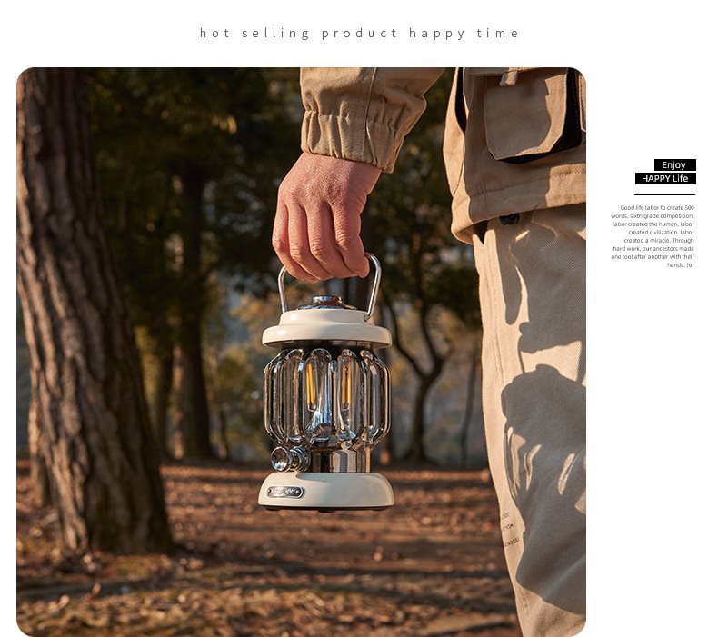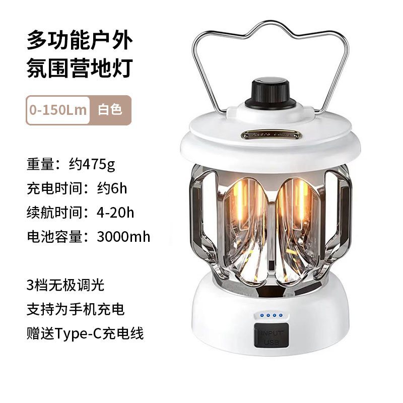 • 캠핑 레트로 램프 - 아이보리 화이트 [충전식 버전] 긴 배터리 수명/무단계 디밍