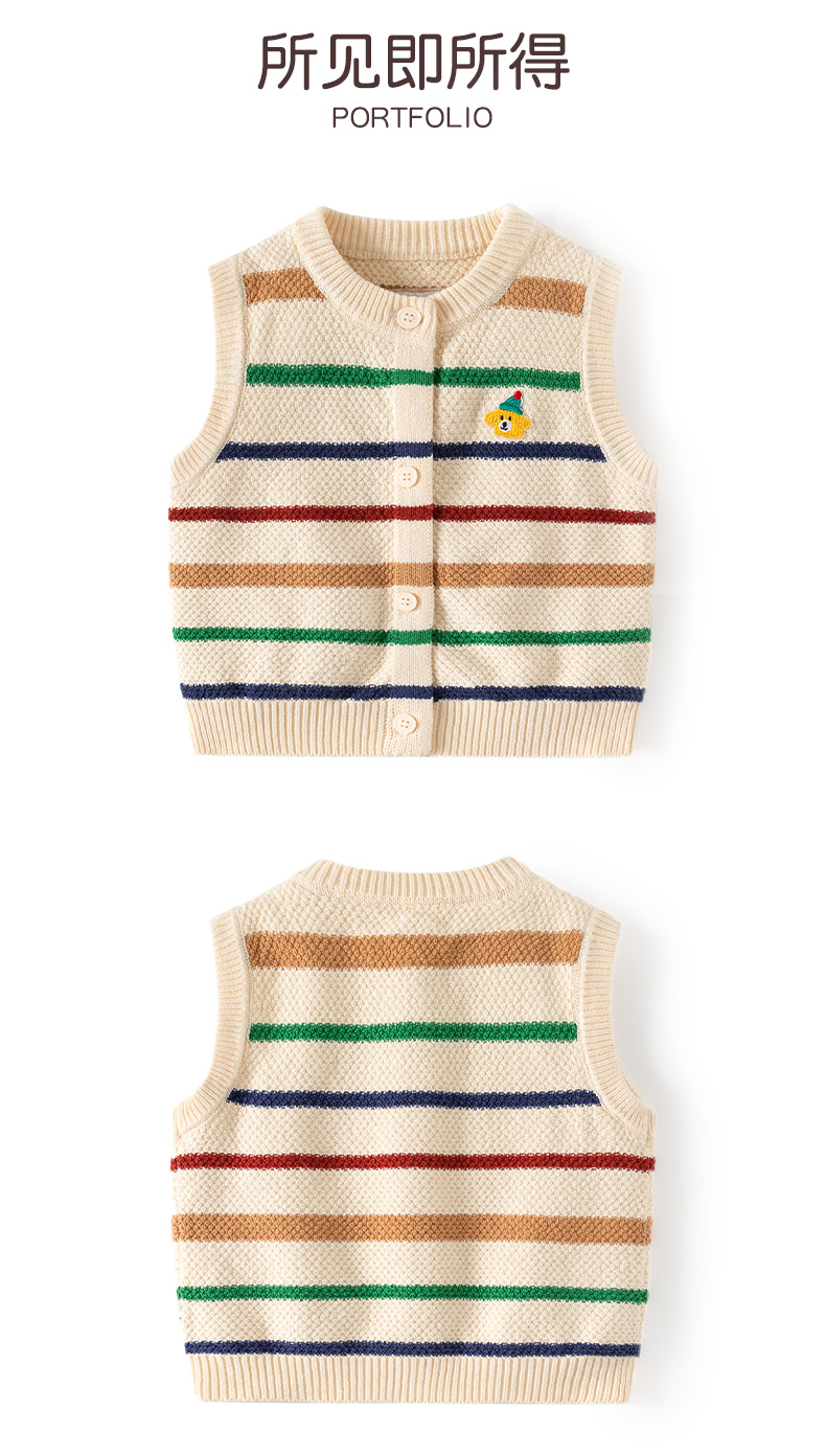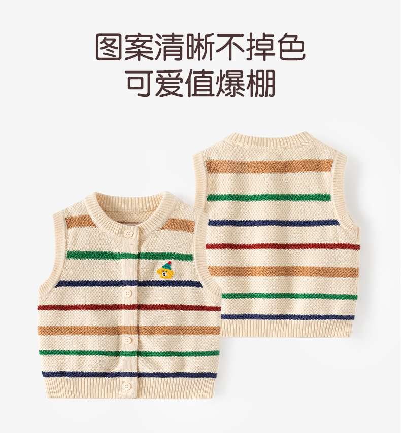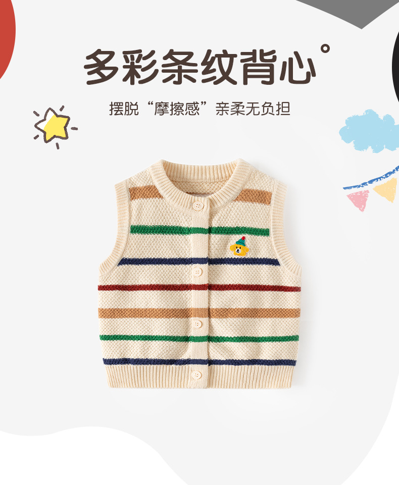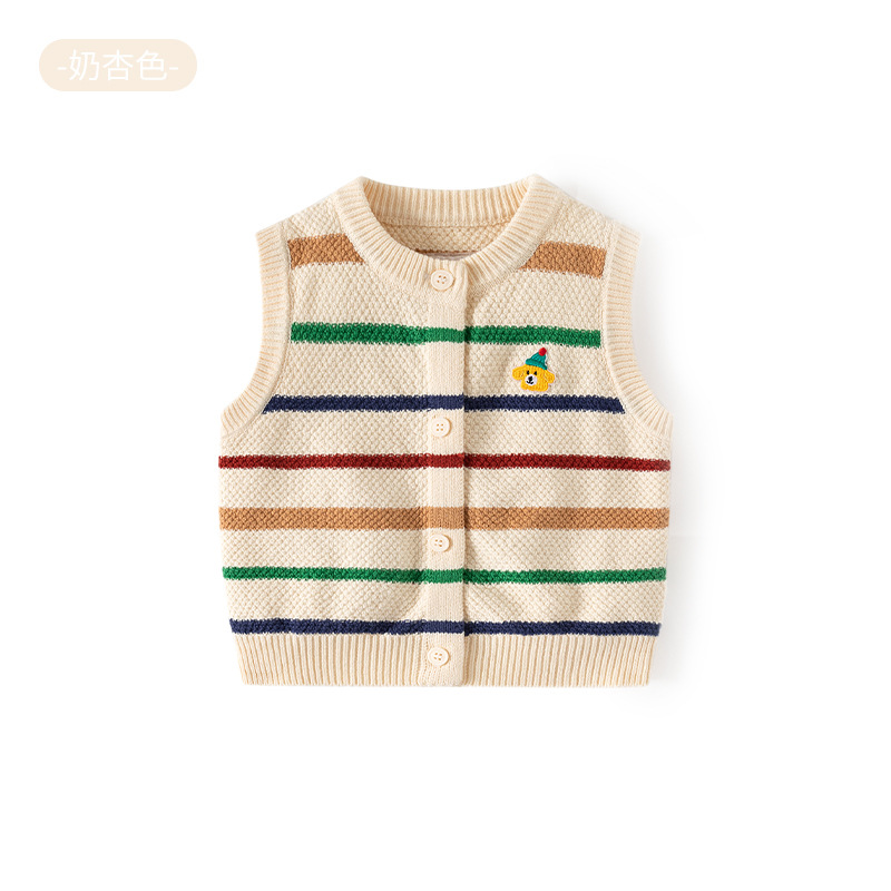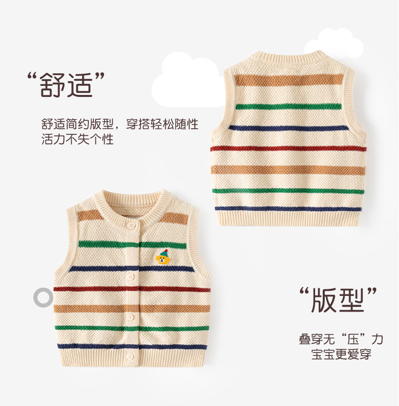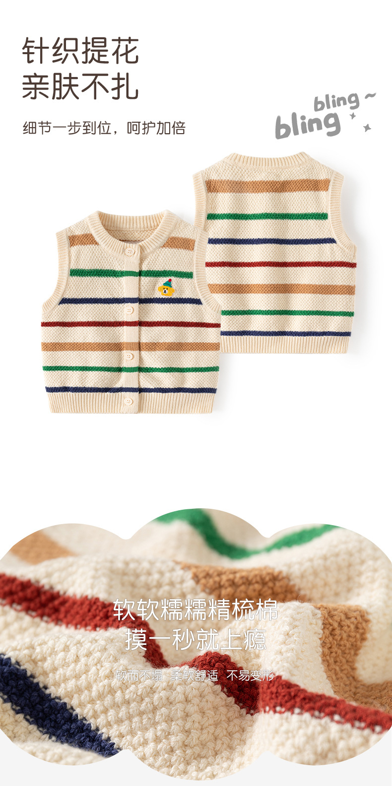 다채로운 줄무늬 한국 스타일 베이비 카디건 조끼 클래스 A 순수 코튼 니트 베이비 조끼 가을 소프트 베이비 조끼스토어 가기