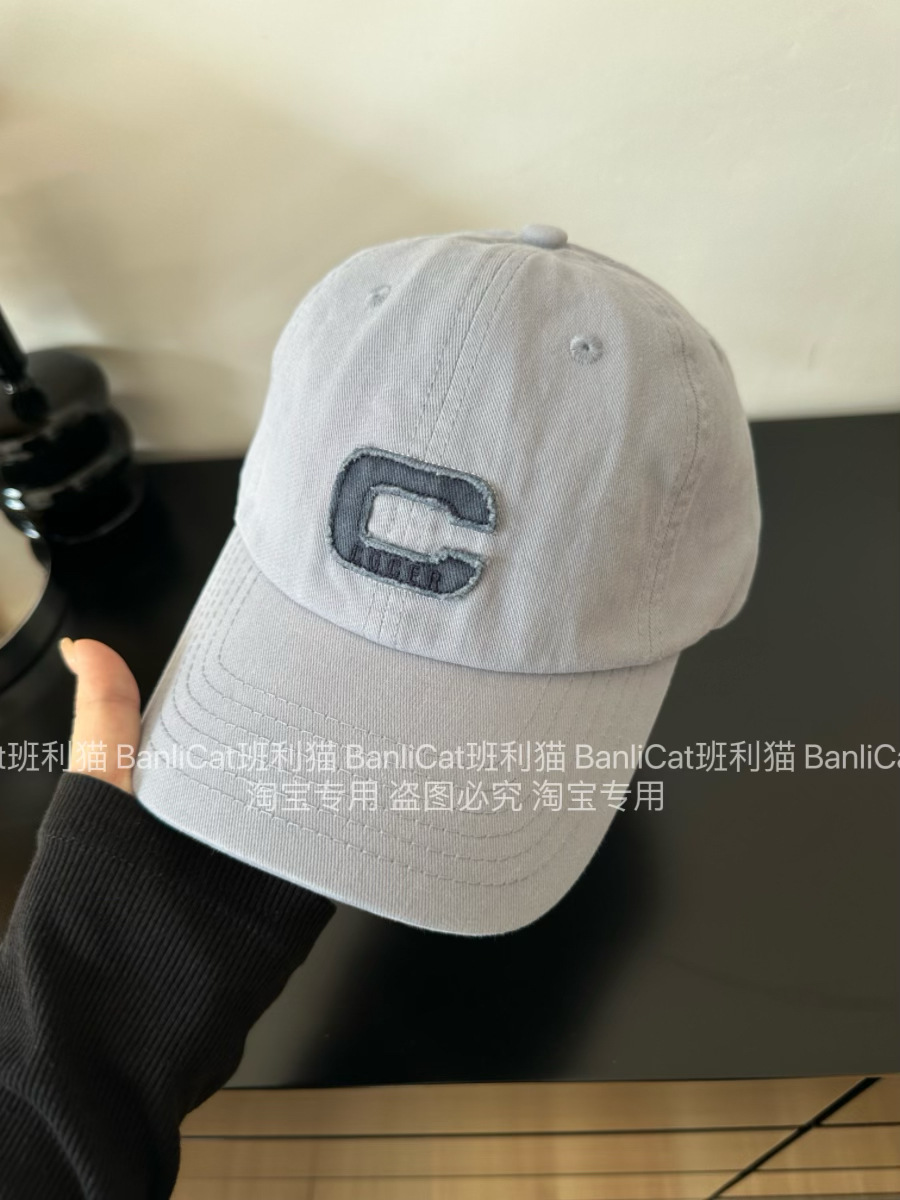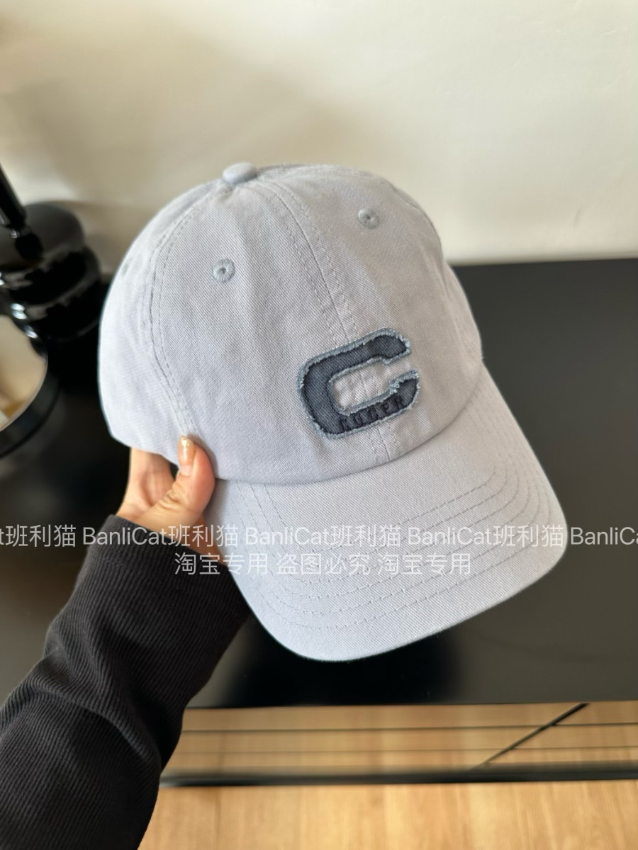 Ins风显白浅蓝色棒球帽女韩版C字母刺绣显脸小鸭舌帽休闲百搭软顶