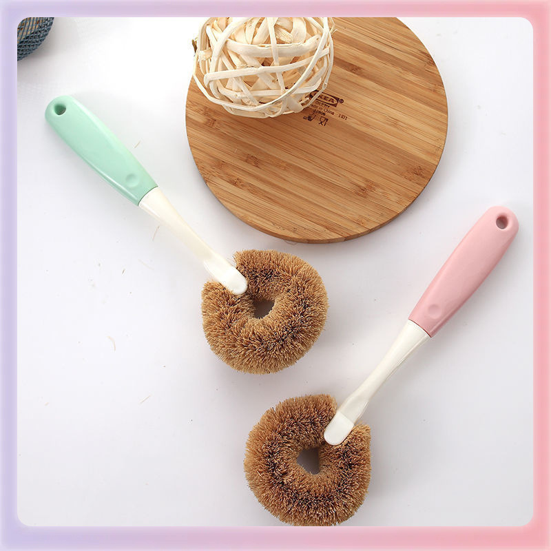 ✅천연 코코넛 야자 세척 팬 브러시 비 오일 브러시 팬 주방 브러시 나무 손잡이 긴 손잡이 청소 접시스토어 가기