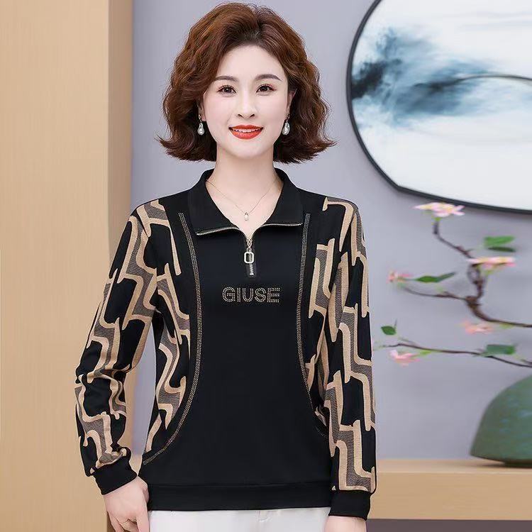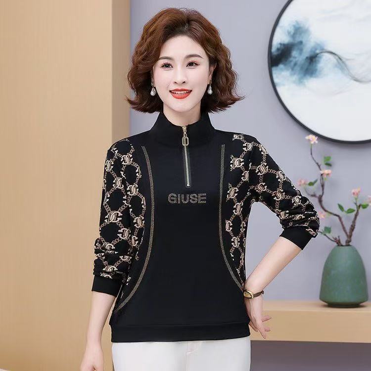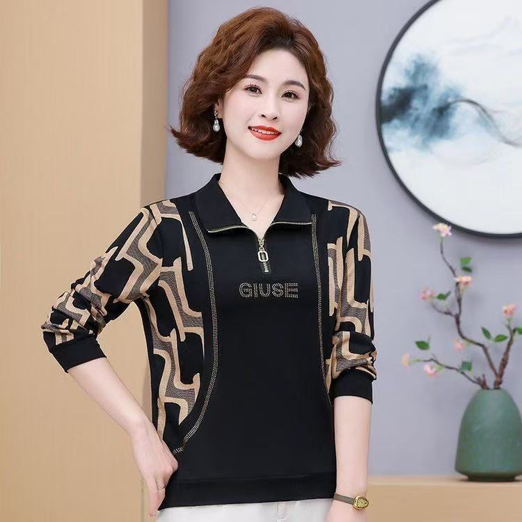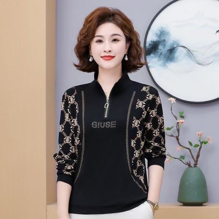 여름 새로운 중년 어머니 패션 외국 스타일의 느슨한 바닥 티셔츠 하이 엔드 플러스 사이즈 여성 긴팔 세대스토어 가기