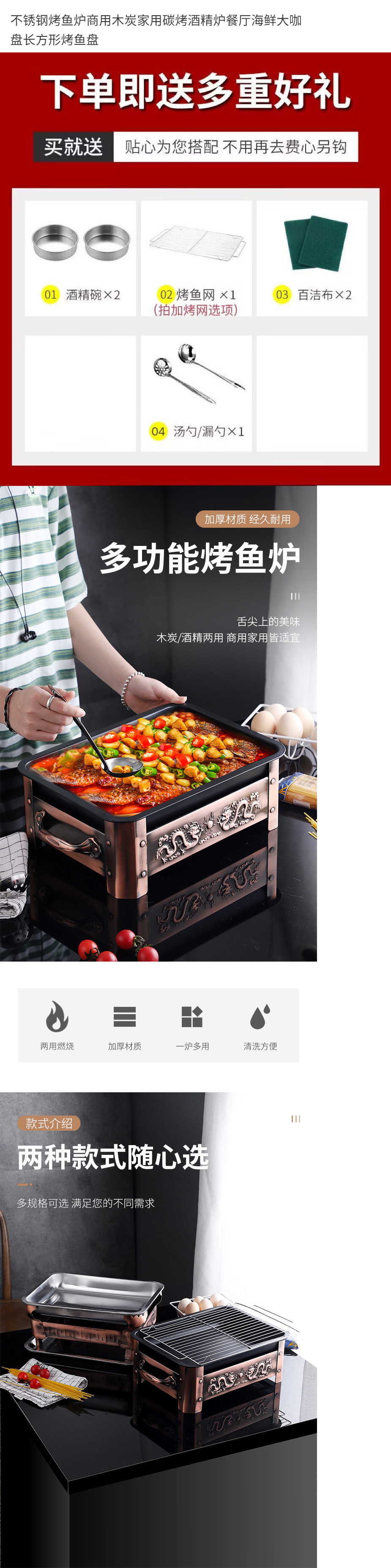 구운 생선 구이 생선 접시 용 특수 오븐 직사각형 가정용 스테인레스 스틸 상업용 해산물 대형 커피 플레이트 숯 오븐 탄소 구이 생선스토어 가기