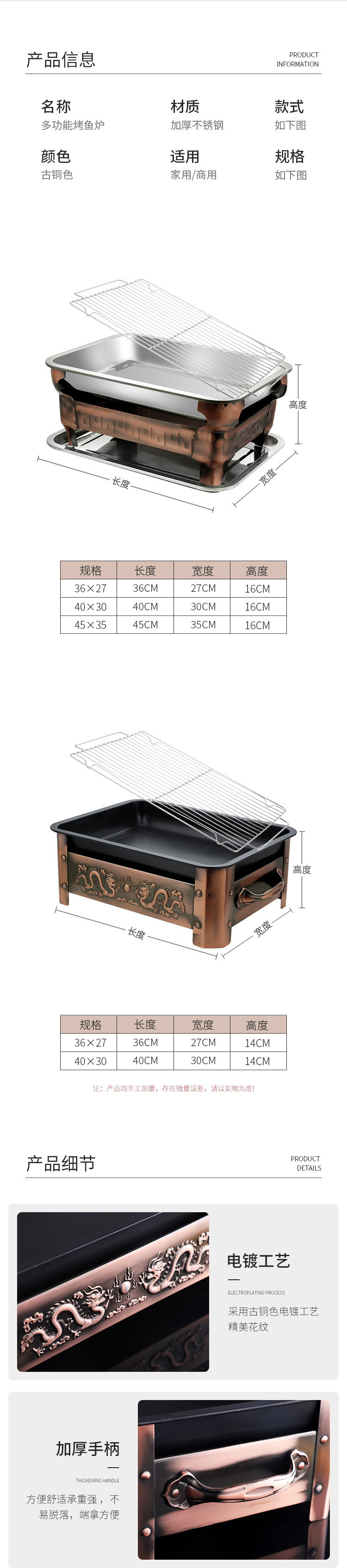 구운 생선 구이 생선 접시 용 특수 오븐 직사각형 가정용 스테인레스 스틸 상업용 해산물 대형 커피 플레이트 숯 오븐 탄소 구이 생선