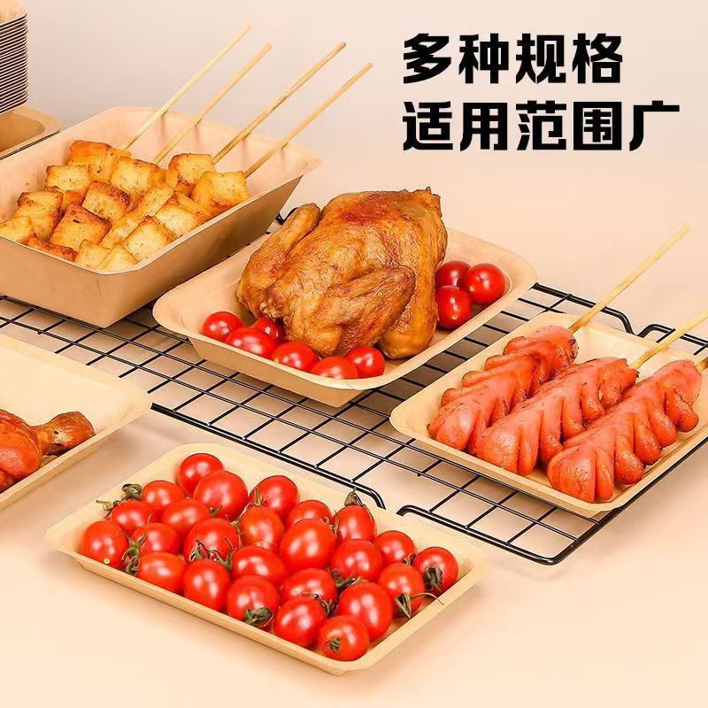 일회용 종이 플레이트 바베큐 플레이트 크래프트 종이 직사각형 트레이 신선한 프라이드 치킨 프라이스 스낵 두꺼운 캠핑 플레이트