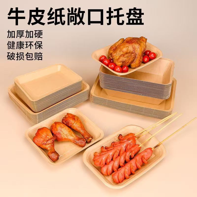 일회용 종이 플레이트 바베큐 플레이트 크래프트 종이 직사각형 트레이 신선한 프라이드 치킨 프라이스 스낵 두꺼운 캠핑 플레이트스토어 가기