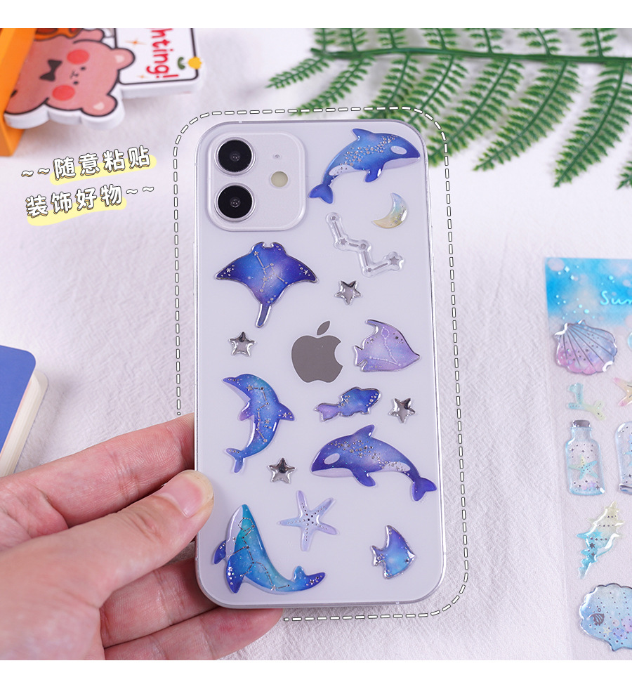 바다 물고기 크리스탈 스티커 스테레오 다이아몬드 어린이 소녀 상 스티커 수제 사진 앨범 일기 휴대 전화 장식