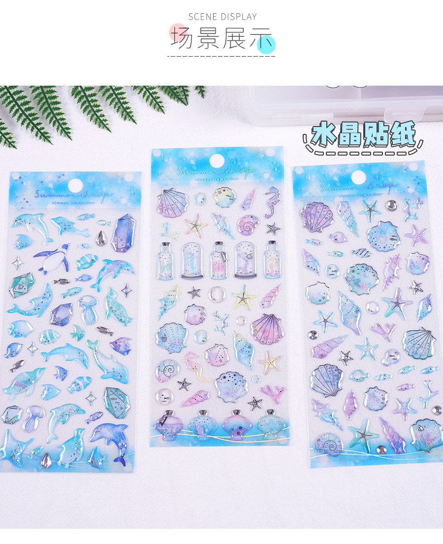바다 물고기 크리스탈 스티커 스테레오 다이아몬드 어린이 소녀 상 스티커 수제 사진 앨범 일기 휴대 전화 장식스토어 가기