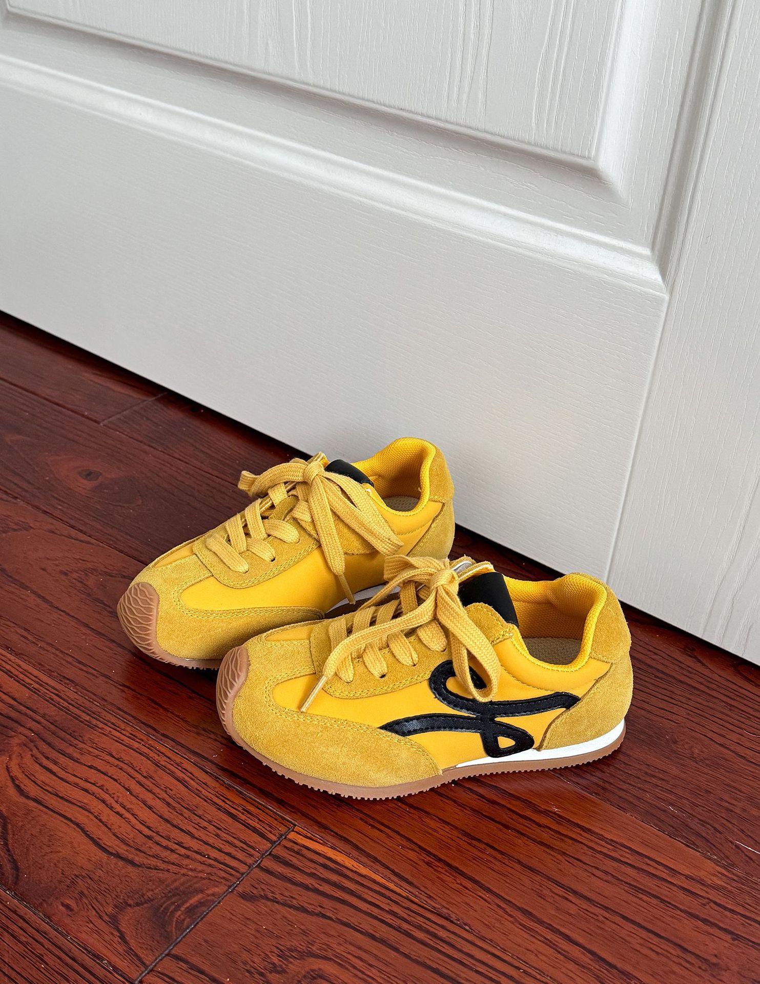 어린이 미끄럼 방지 포레스트 검프 신발 봄과 여름 2025 새로운 소년과 소녀 정품 가죽 소프트 하단 색상-학생들을위한 독일 훈련 신발 운동화