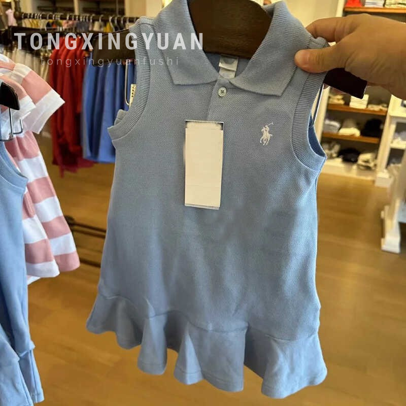 Tongxingyuan 소녀 여름 POLO 칼라 원피스 여름 새로운 어린이 대학 스타일 블루 민소매 조끼 스커트스토어 가기