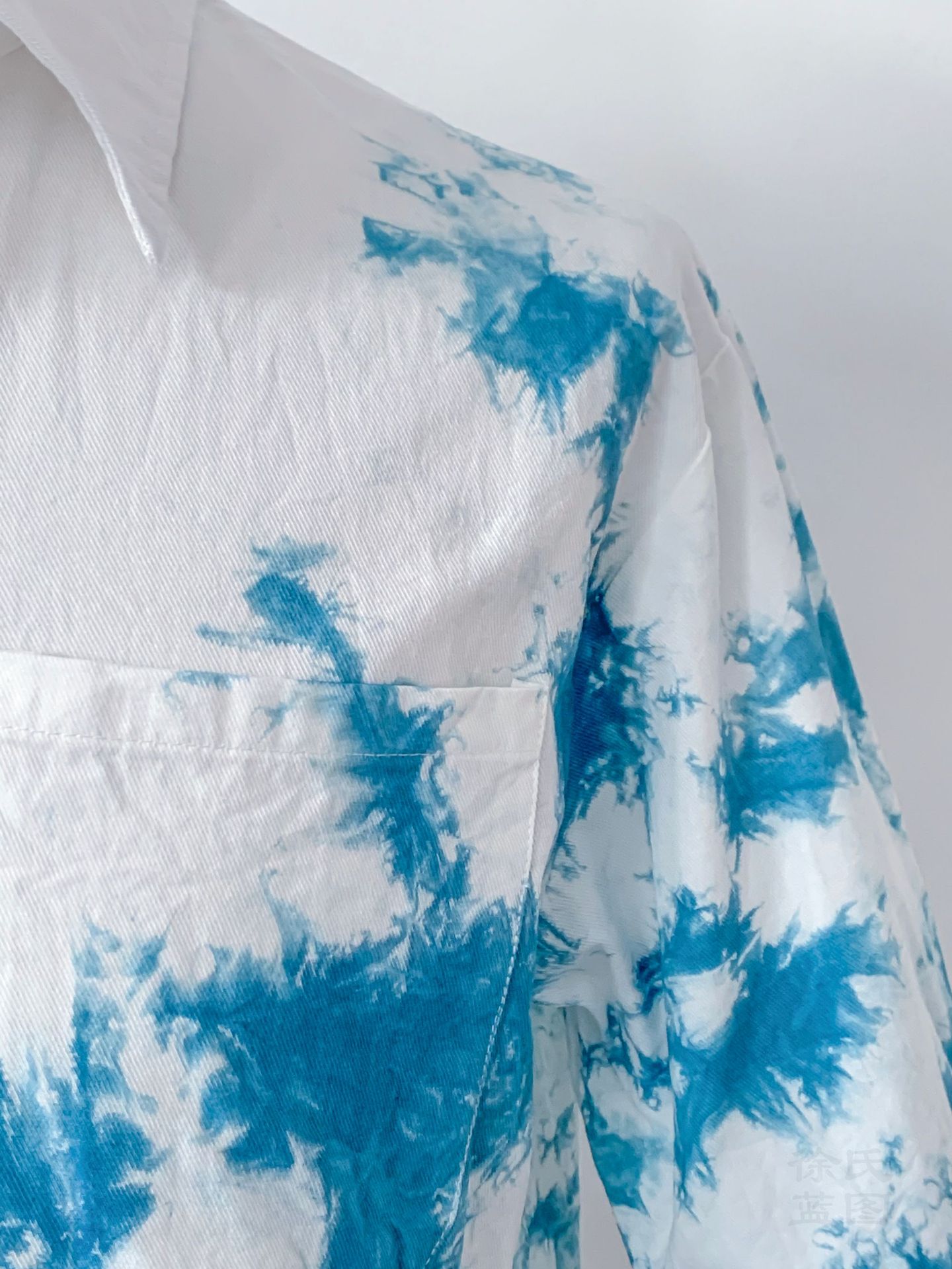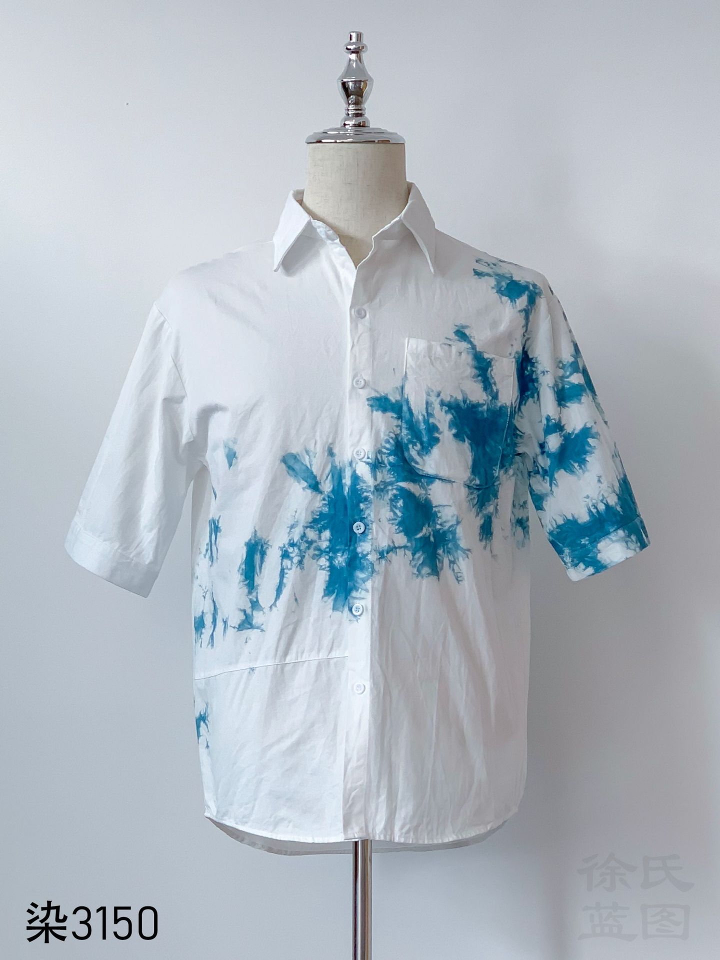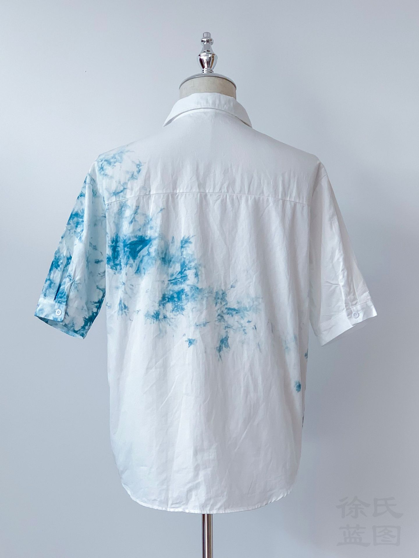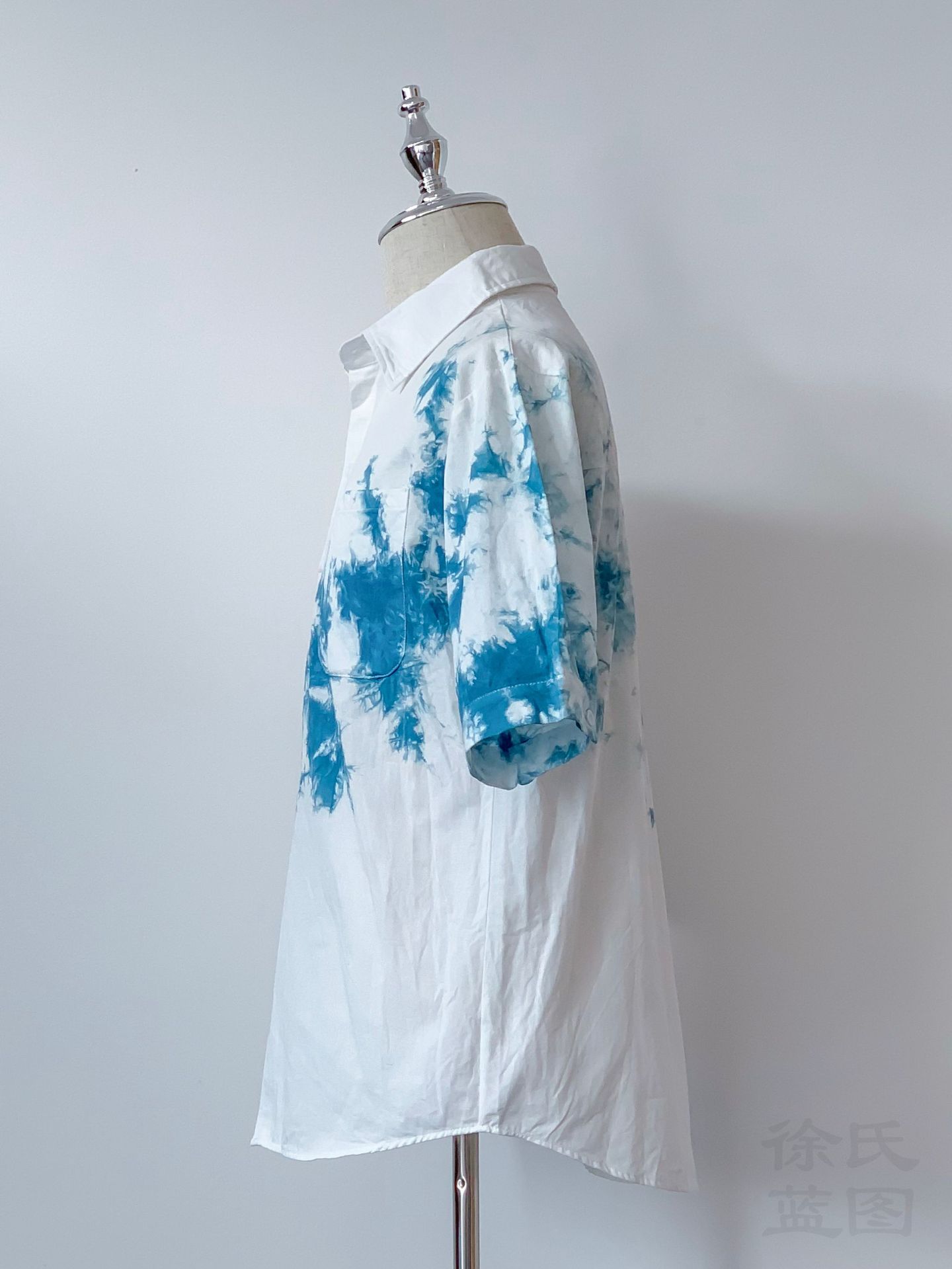 달리 수제 넥타이 염색 민족 스타일 남성 반팔 셔츠 여름 휴가 캐주얼 블루 염료 식물 염색 셔츠스토어 가기
