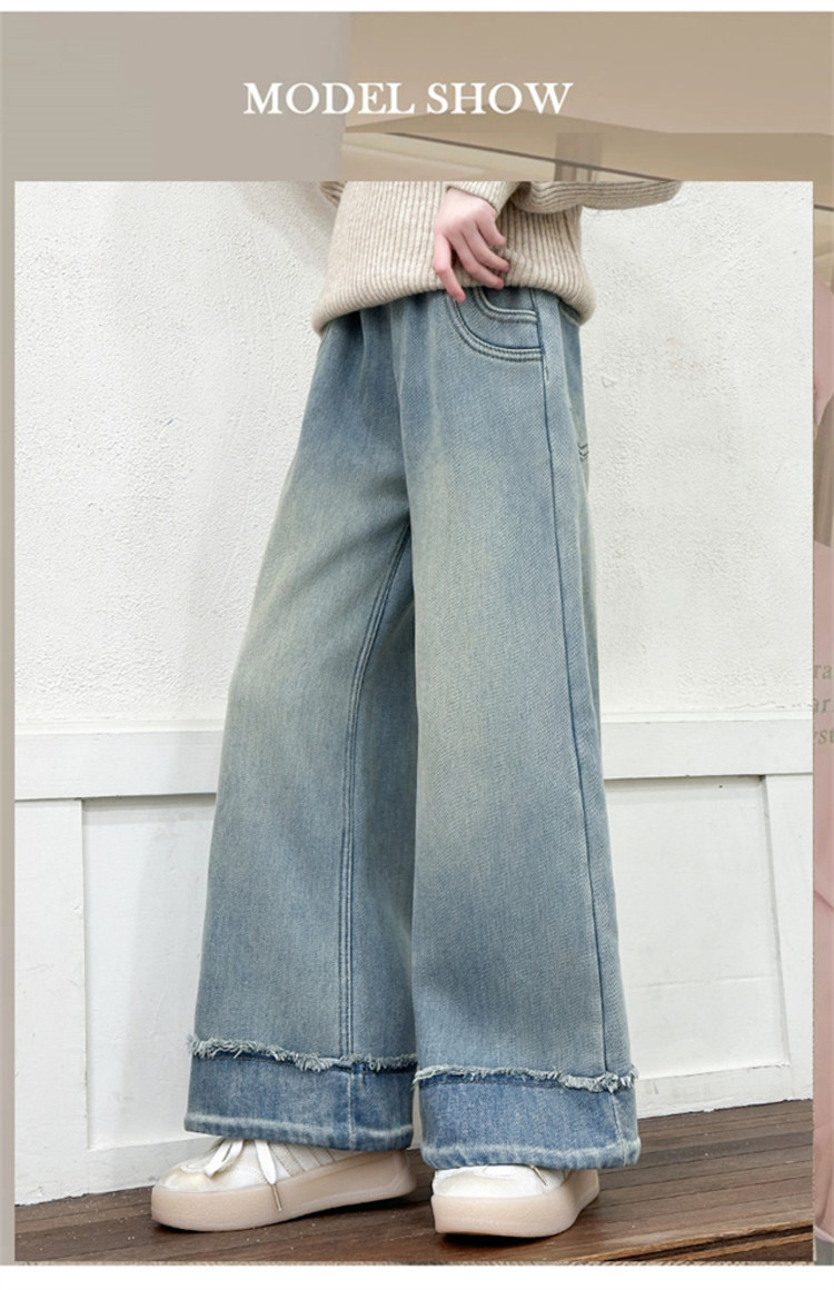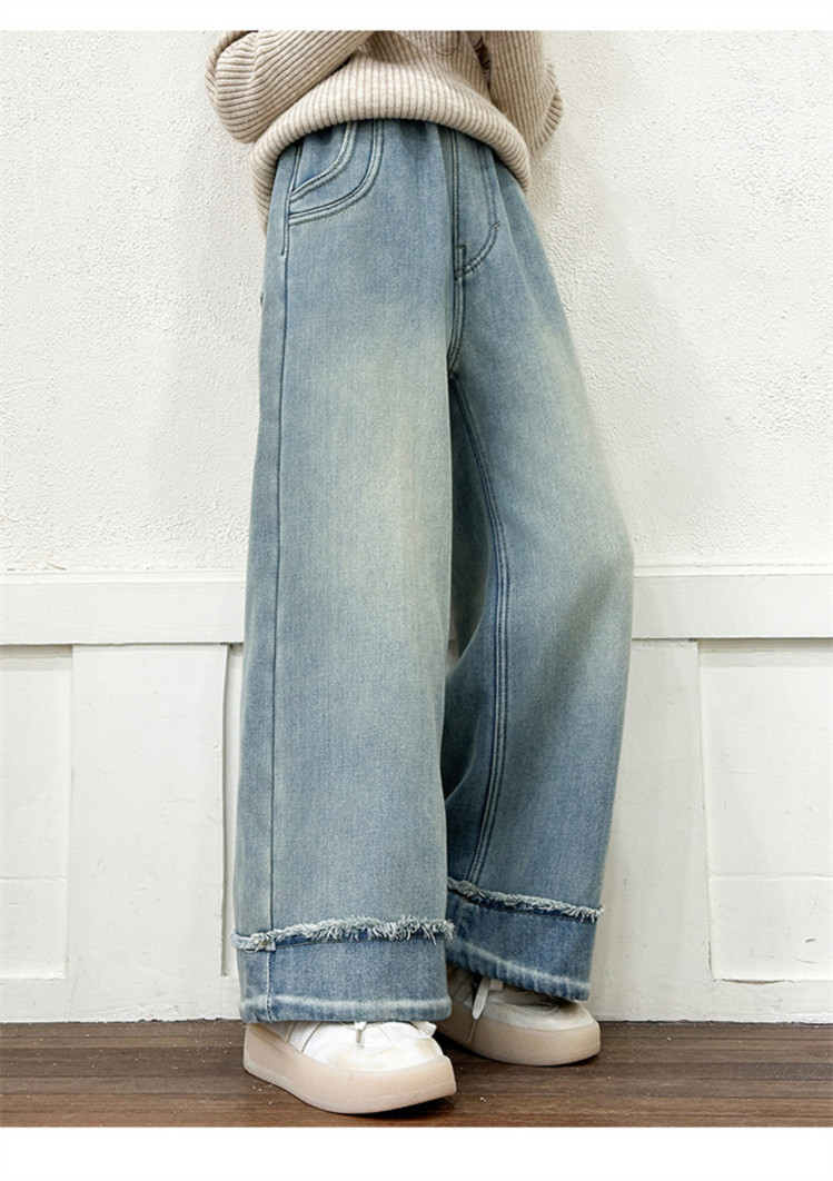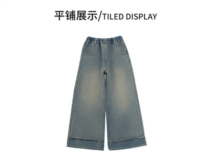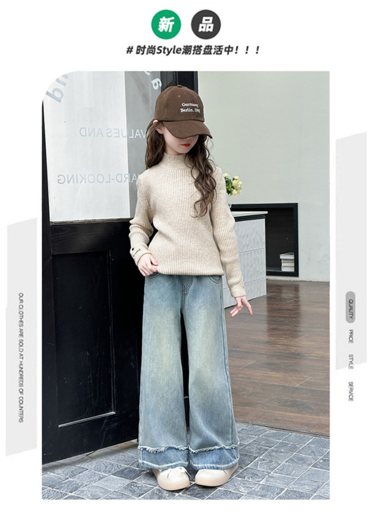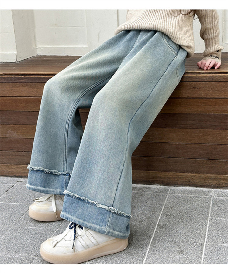 봄과 가을 새로운 소녀 바지 2025 느슨한 직선 청바지 어린이 유행 서양식 폭발 단순스토어 가기