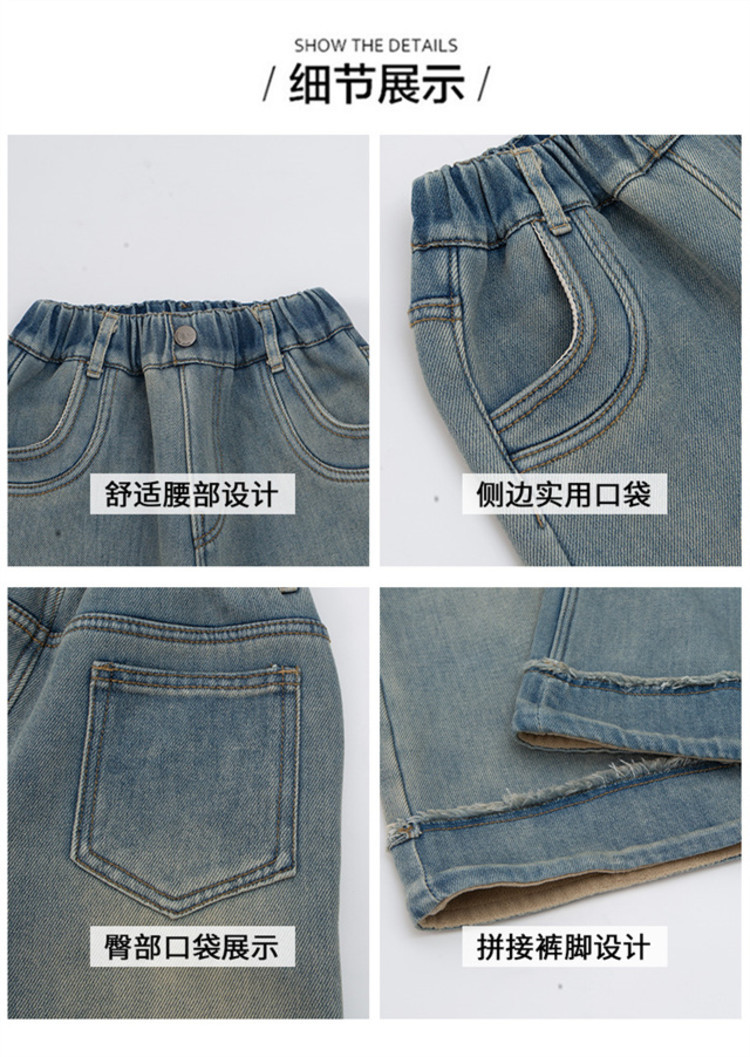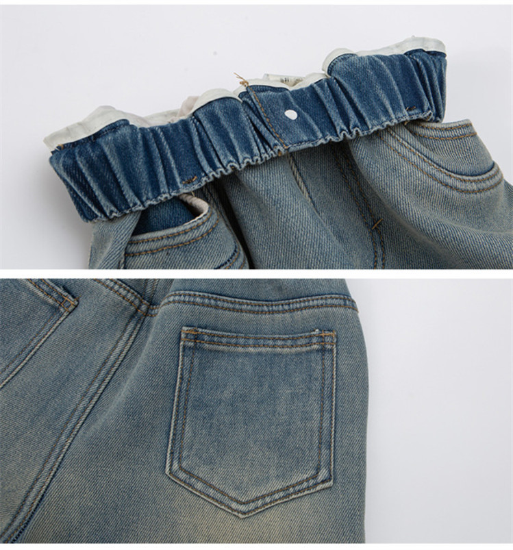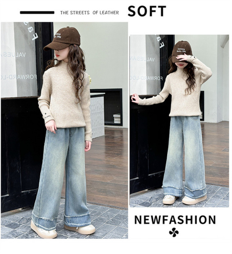 봄과 가을 새로운 소녀 바지 2025 느슨한 직선 청바지 어린이 유행 서양식 폭발 단순
