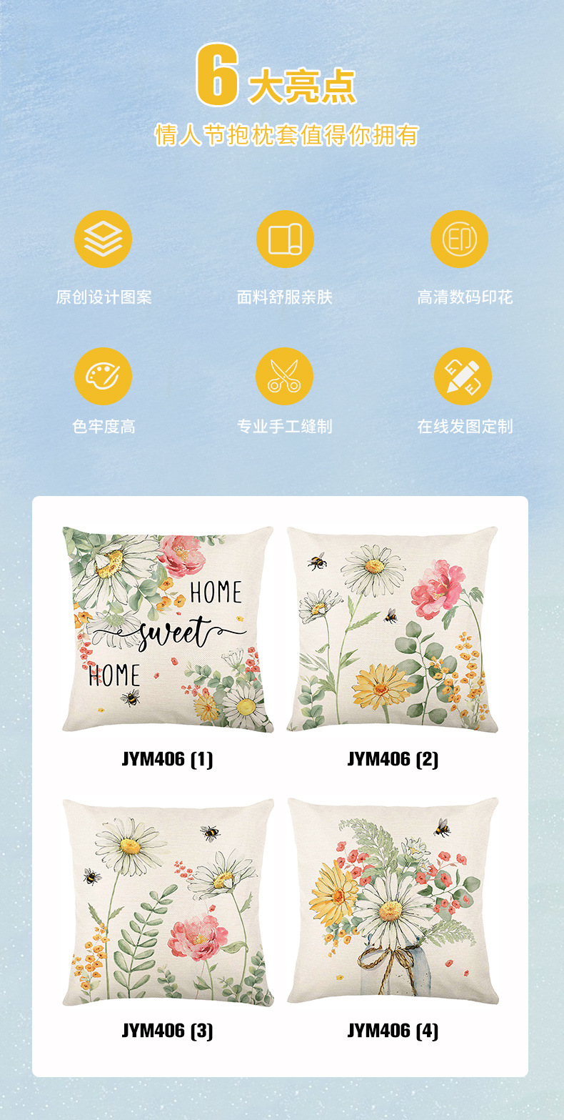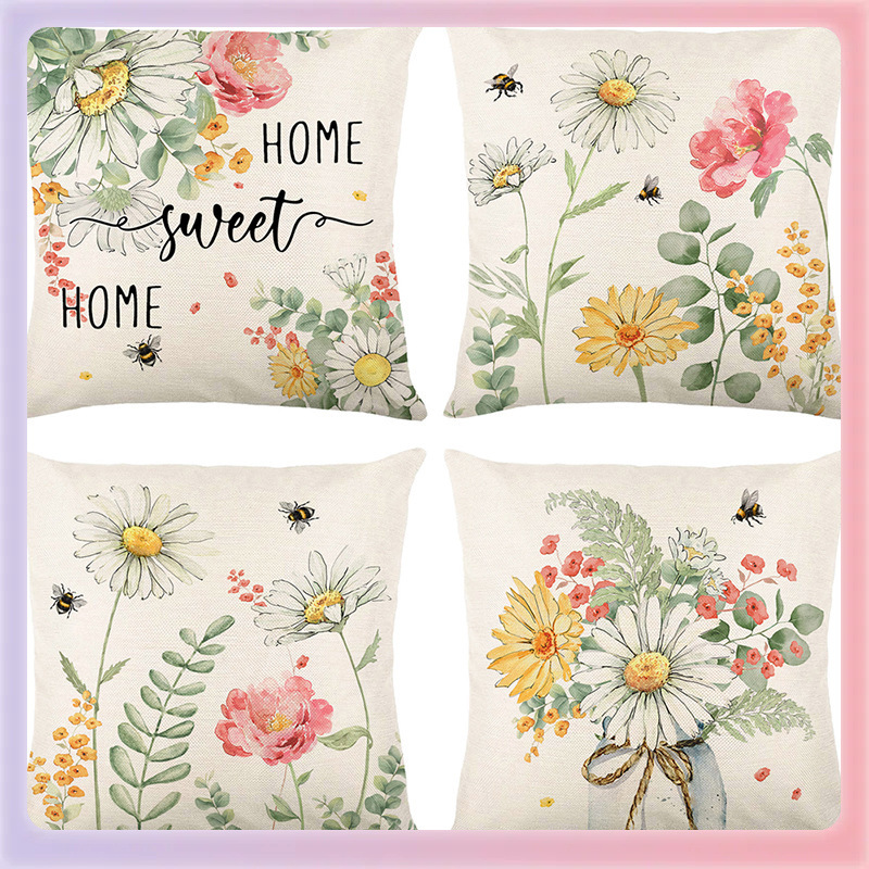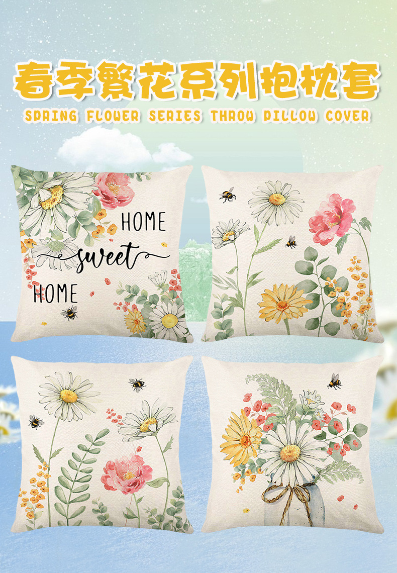 ✅Temu 국경 봄 시리즈 베개 케이스 린넨 인쇄 북유럽 가정 식물 꽃 쿠션 베개 쿠션