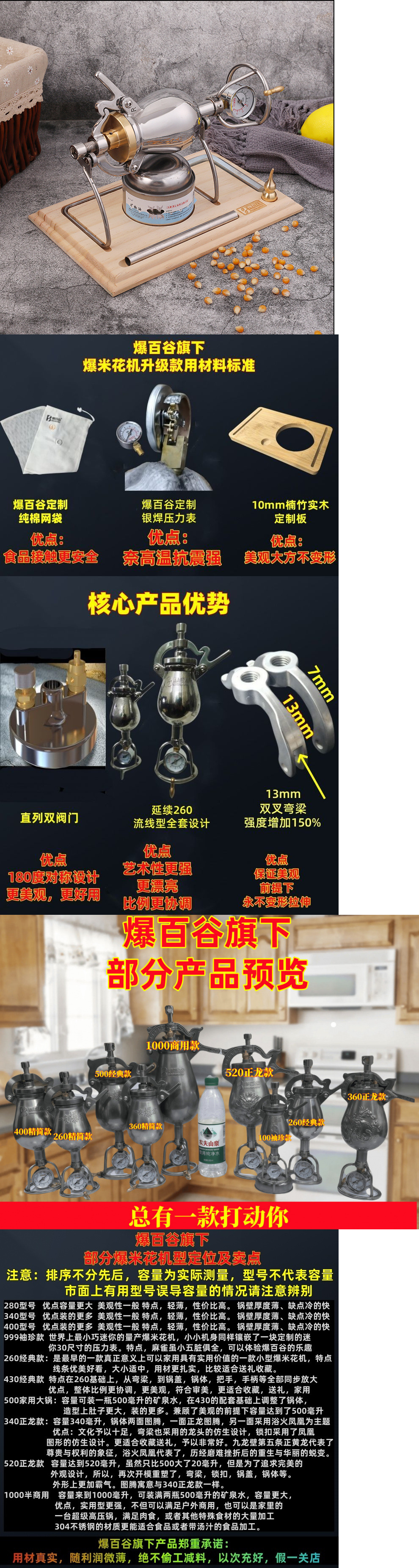 가정용 미니 팝콘 기계 곡물 증폭기 304 스테인레스 스틸 구식 수제 팝콘 스토브 새로운 스타일