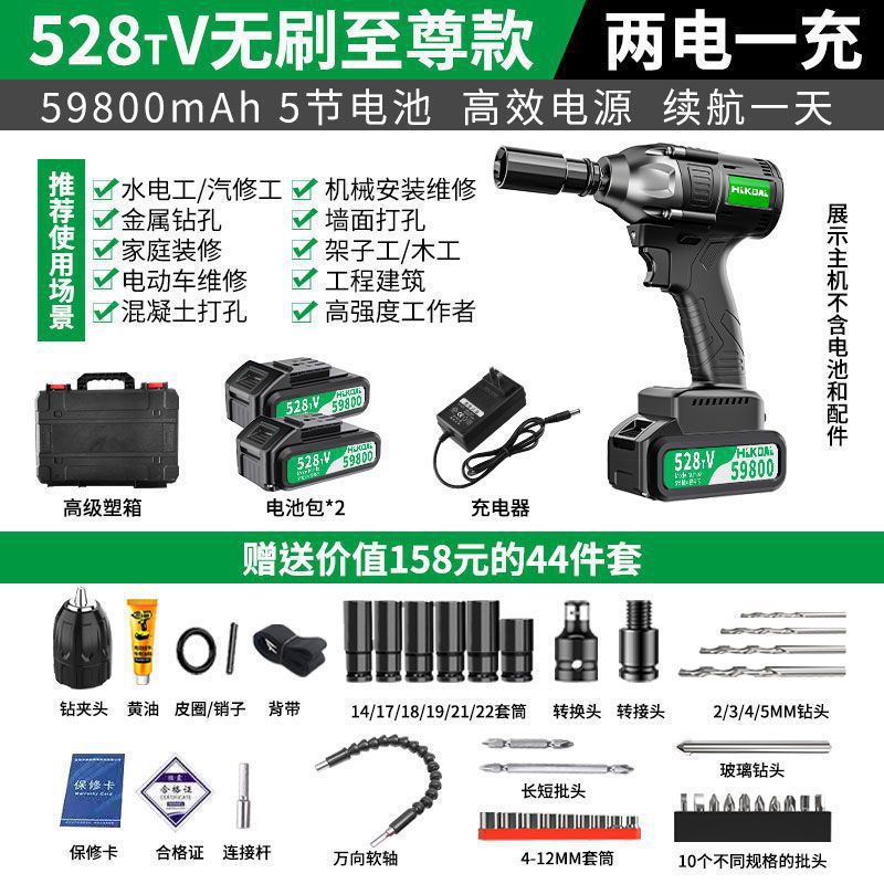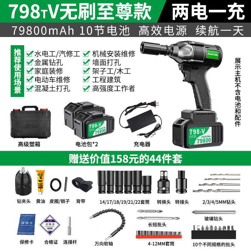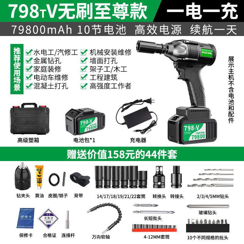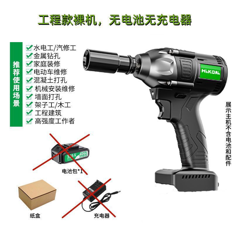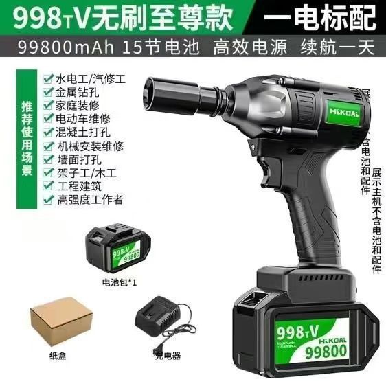 브러시리스 전기 렌치, 대형 토크 충격 렌치, 발판, 자동차 수리 슬리브, 충전식 전기 공기 대포, 기본 품목