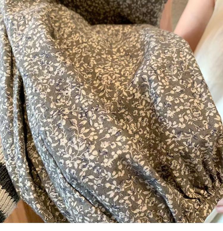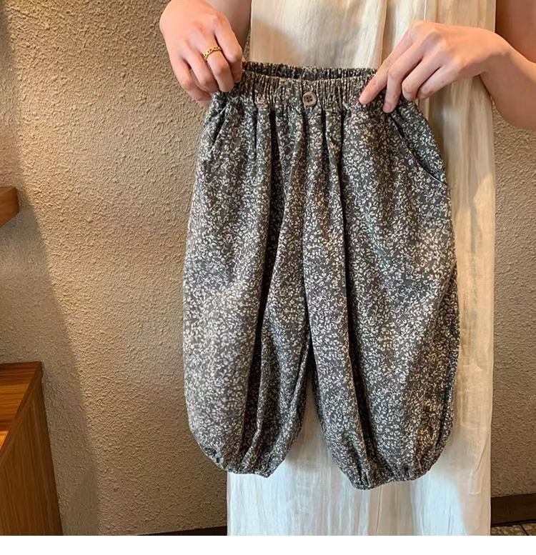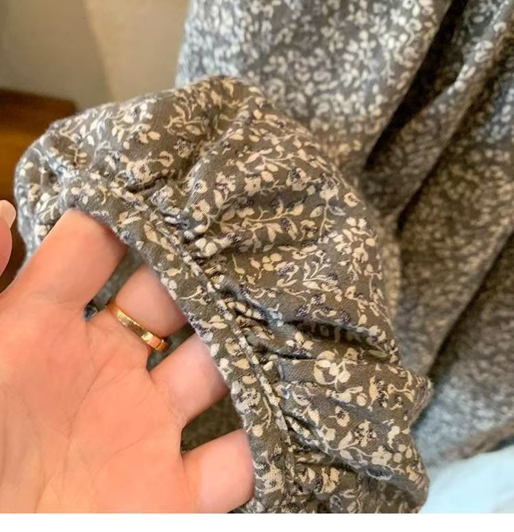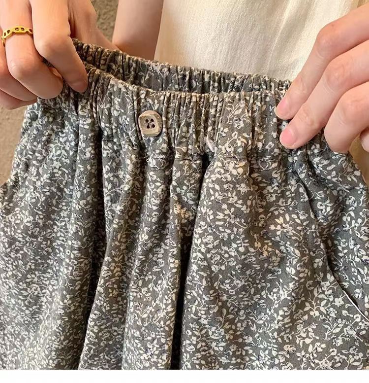• 살구 멜빵 + 카키색 밑단 셔츠 + 꽃무늬 블루머