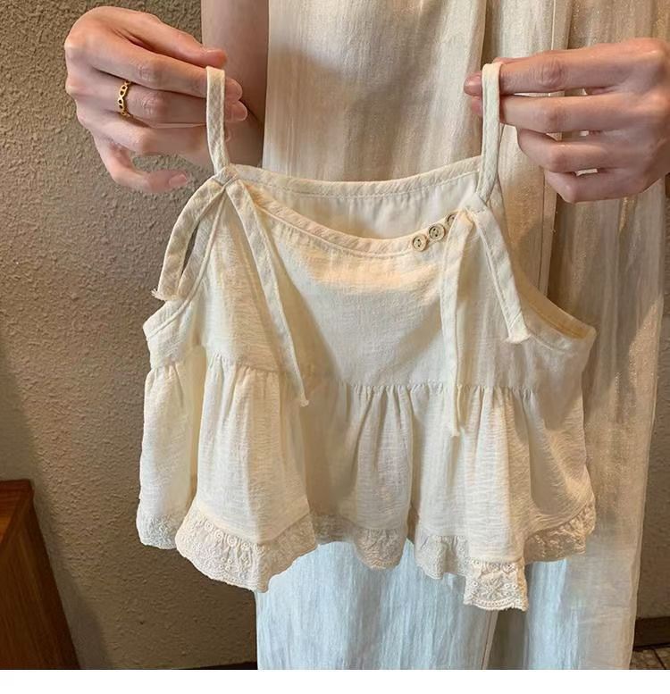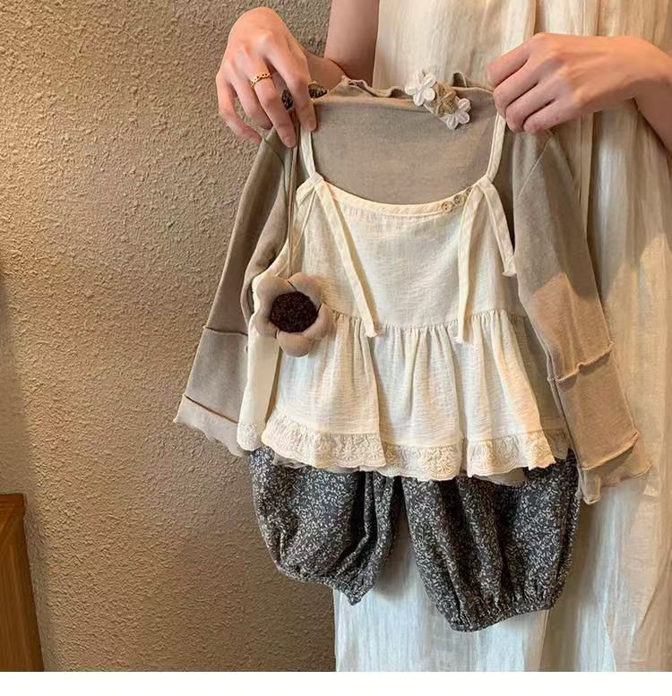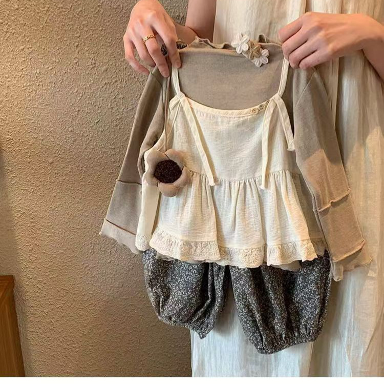 소녀의 봄 세트 2025 새로운 여성 바오양 스타일 한국 슬림 핏베이스 셔츠 슬링 바지 캐주얼 3 피스 세트