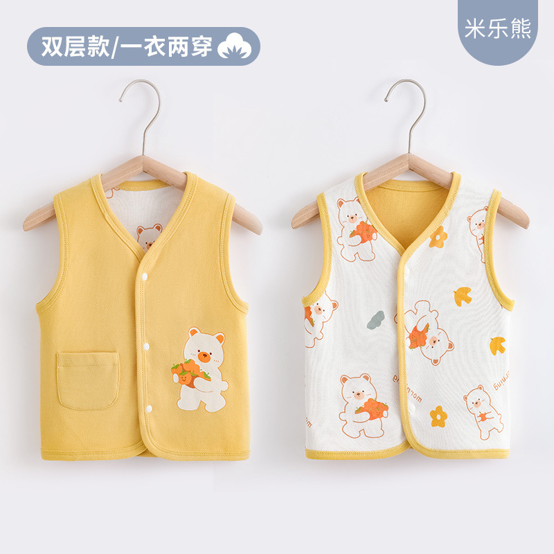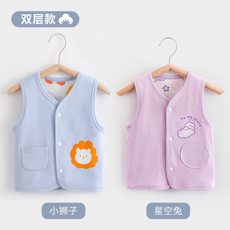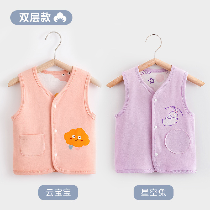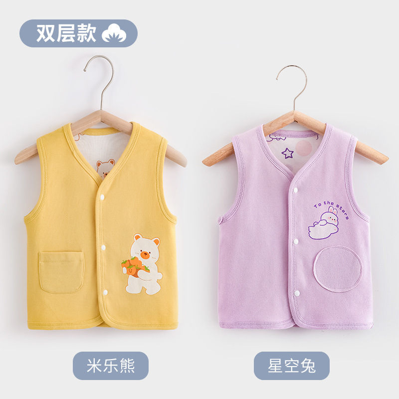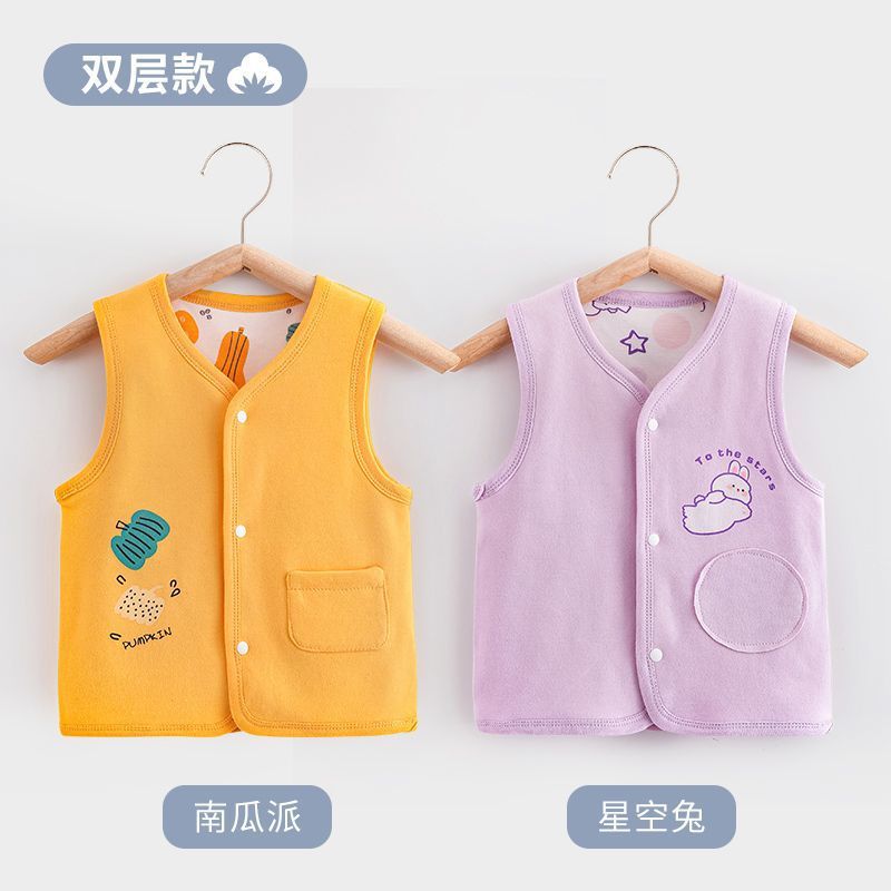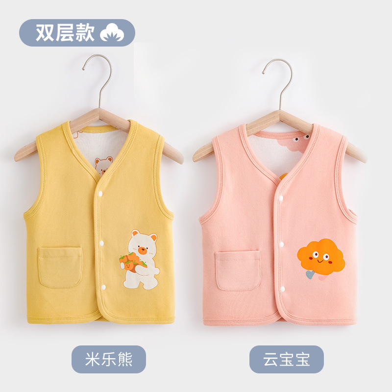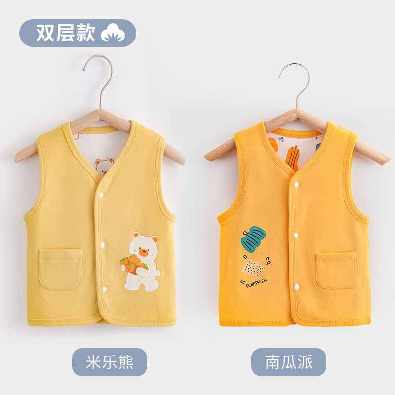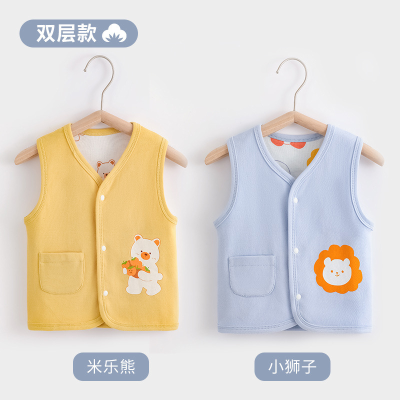 아기 조끼 봄과 가을 순면 더블 레이어 소년 소녀를위한 아기 조끼 따뜻한 어린이 조끼 가을 의상 외국식 허리 코트