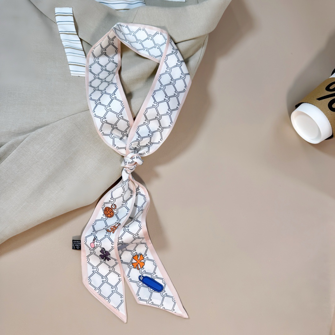고급 스타일 작은 향수 장식 작은 실크 스카프 여성 넥타이 가방 리본 전문 작은 스카프 머리 벨트 리본 스카프
