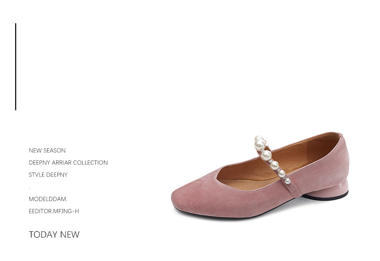 프렌치 스타일 스퀘어 토 펄 싱글 레이어 슈즈 로우 힐 여성용 봄과 가을 레트로 우아한 플랫 힐 프로스트 셔스 입 메리 제인 신발스토어 가기