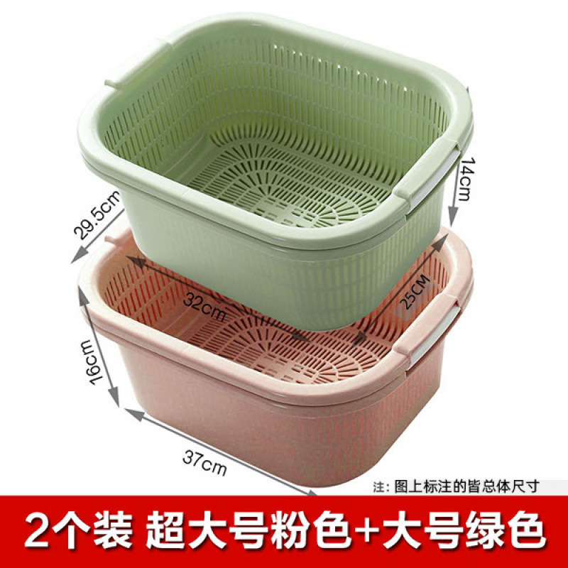 대형 두꺼운 다기능 주방 세척 과일 및 과일 접시 세척 바구니 서랍 바구니 창조적 인 더블 레이어 가정용 플라스틱 제로 볼륨