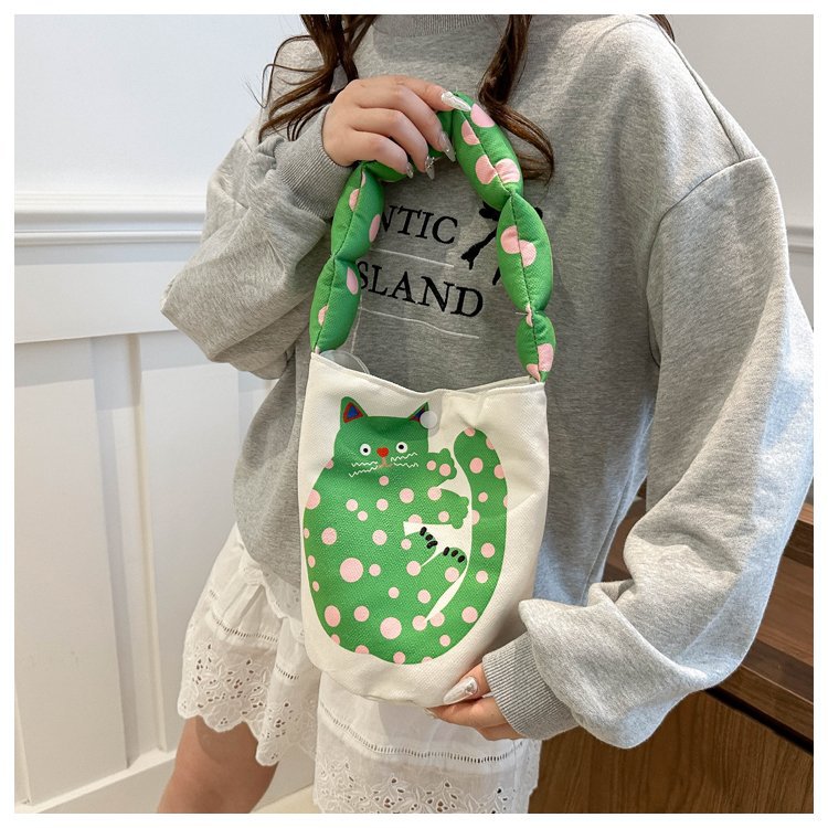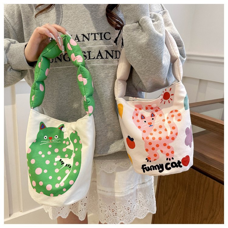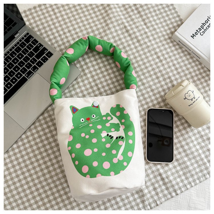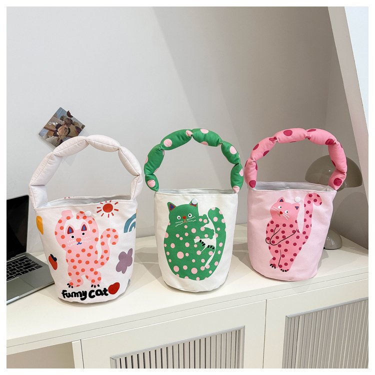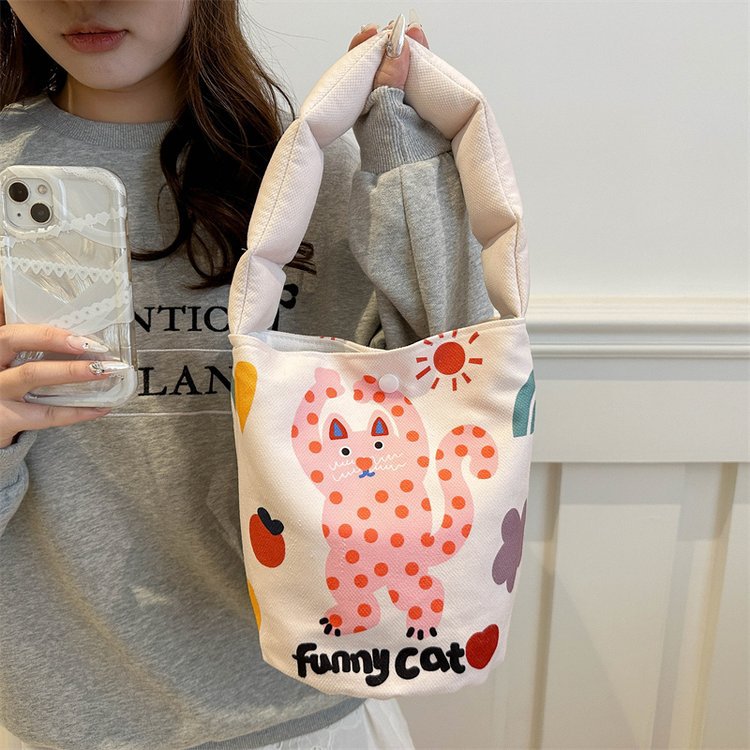 캔버스 가방 공장 도매 귀여운 만화 면화 가방 버킷 캔버스 가방 예술적 컬러 인쇄 목화 가방스토어 가기