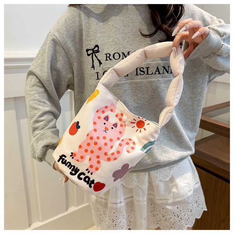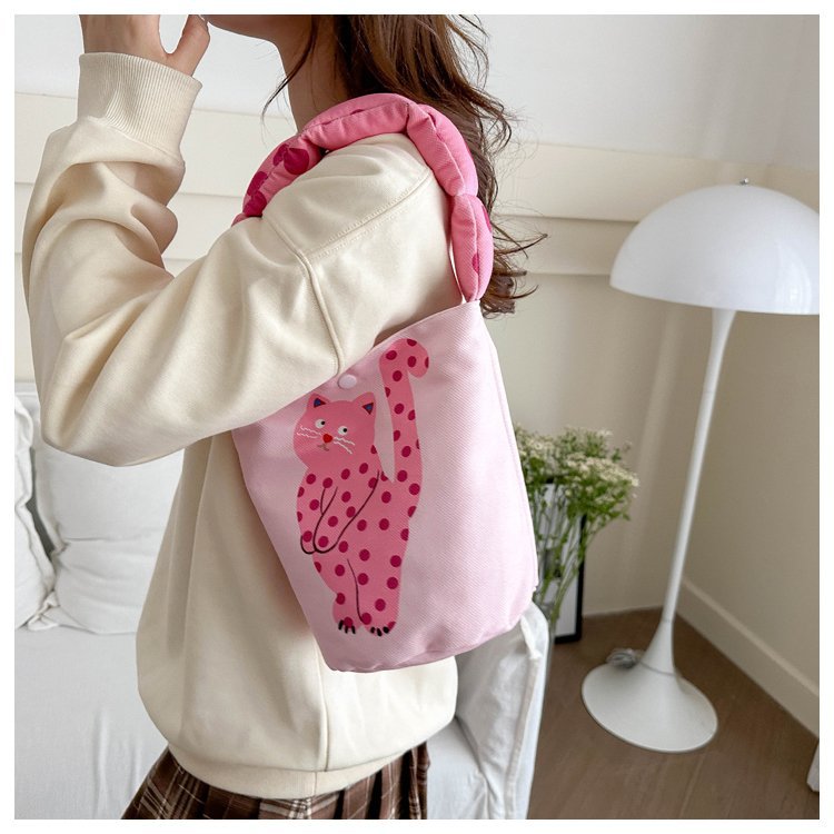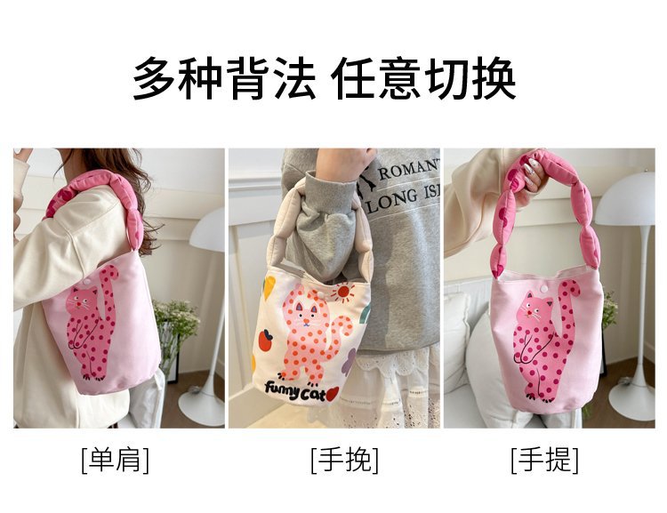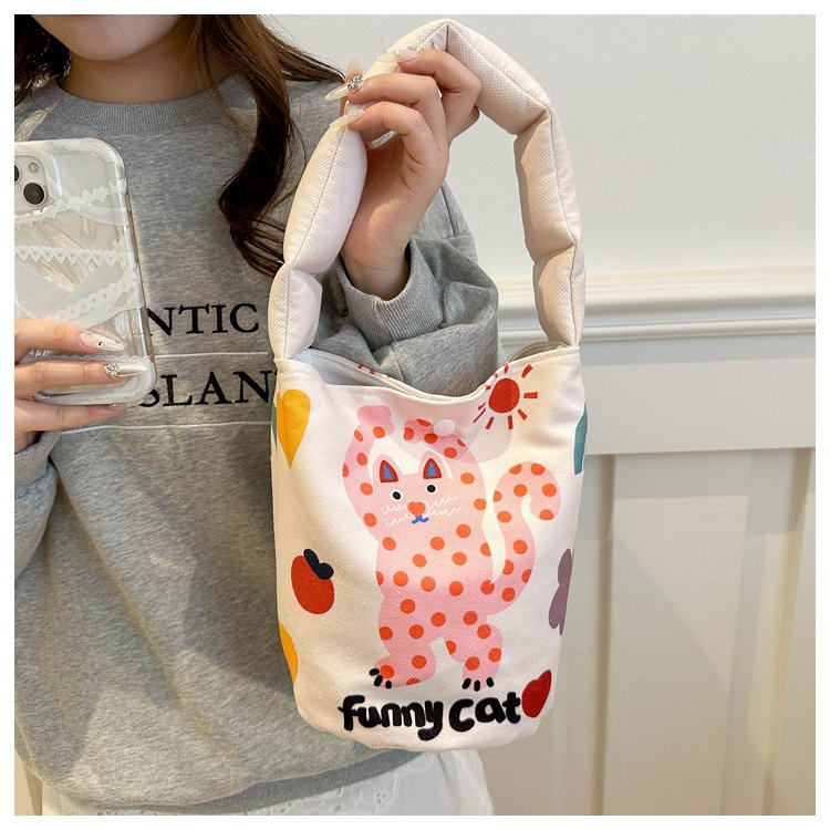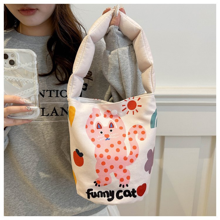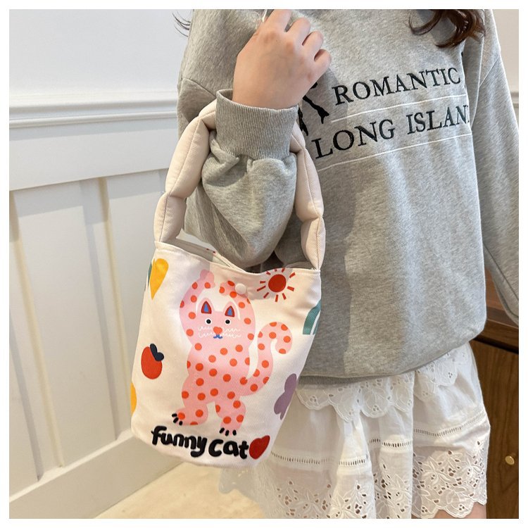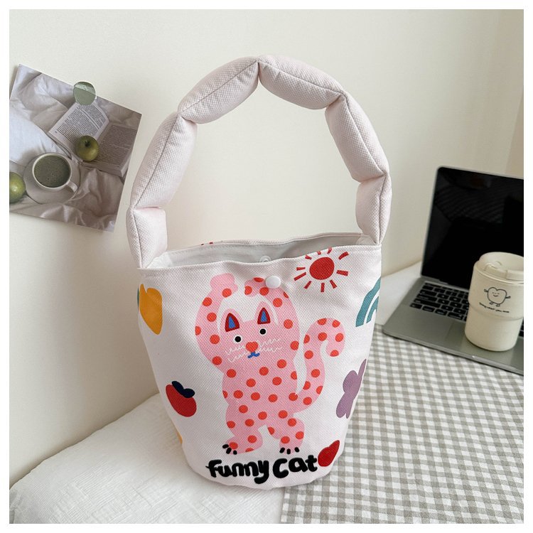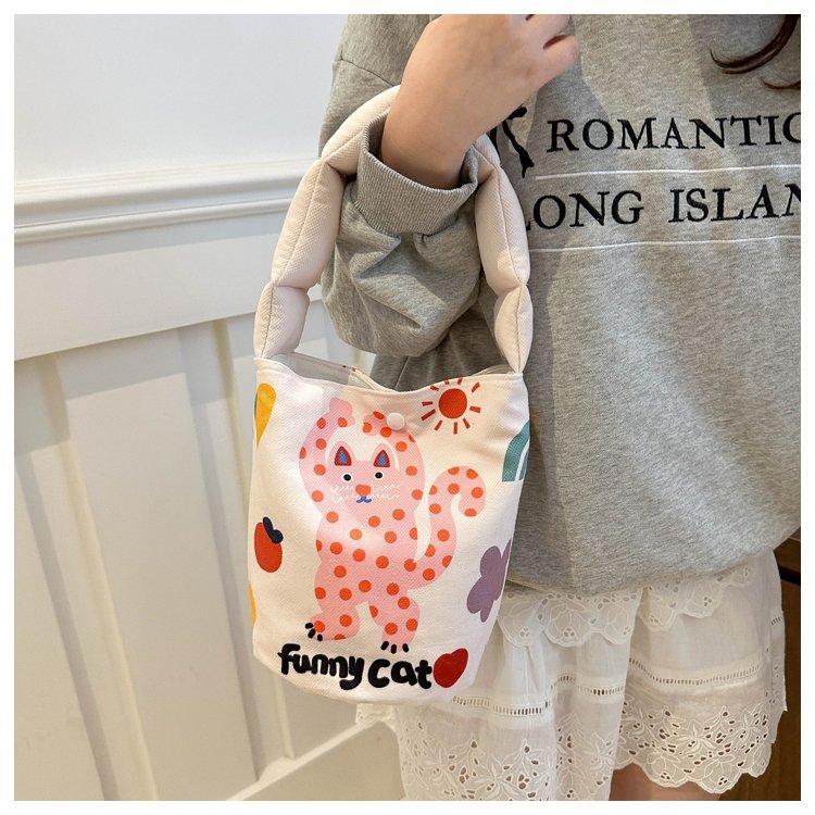 캔버스 가방 공장 도매 귀여운 만화 면화 가방 버킷 캔버스 가방 예술적 컬러 인쇄 목화 가방