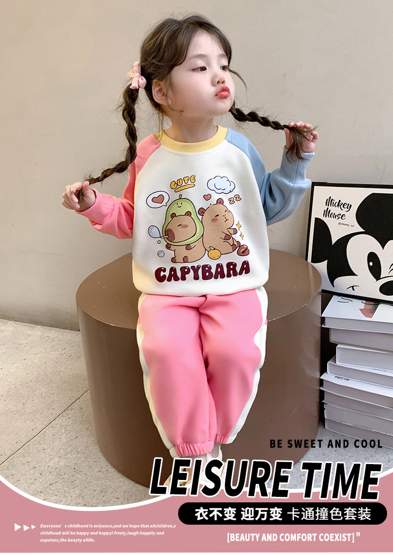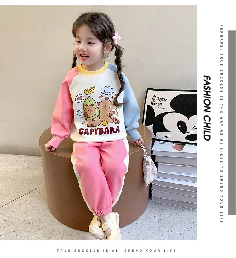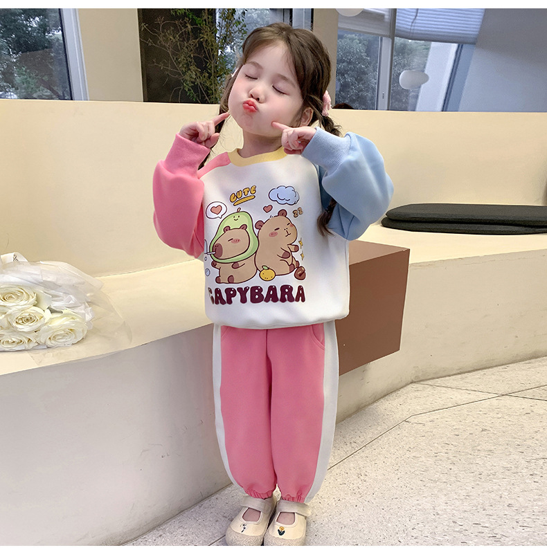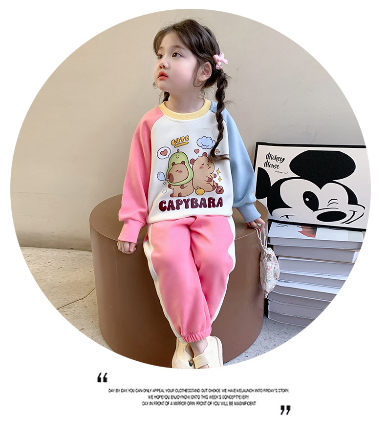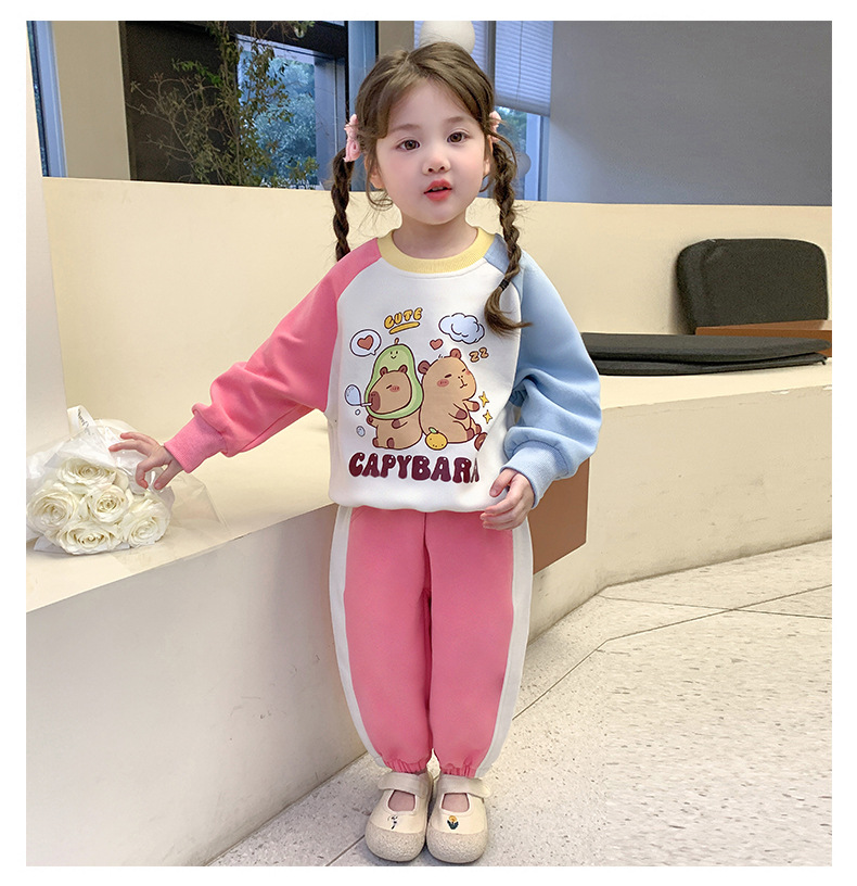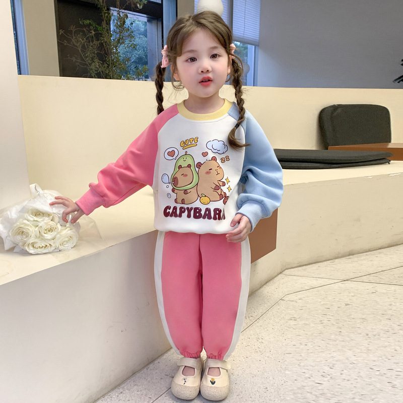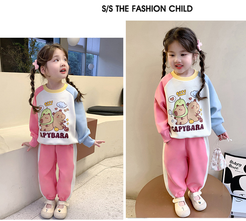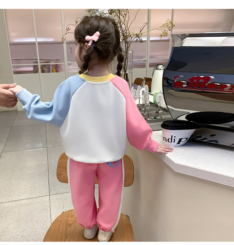 소녀 컬러 매칭 세트 봄과 가을 2025 새로운 어린이 7 달콤한 패션 9 인쇄 아기 캐주얼 투피스 세트