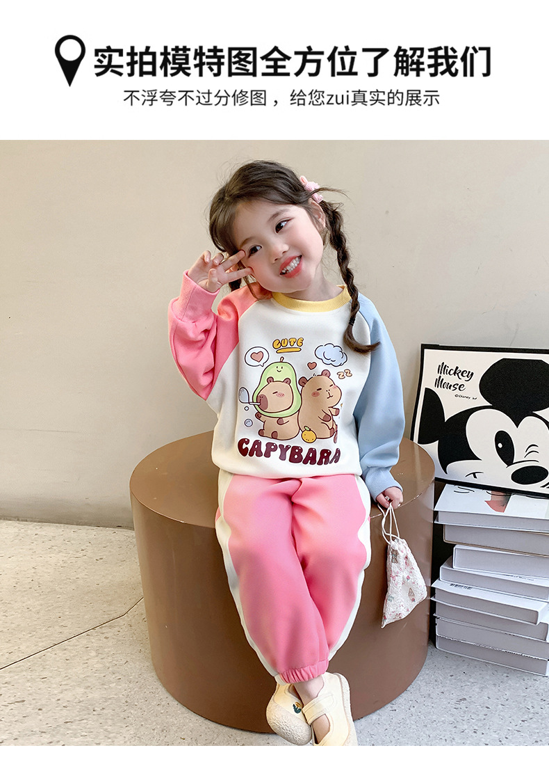 소녀 컬러 매칭 세트 봄과 가을 2025 새로운 어린이 7 달콤한 패션 9 인쇄 아기 캐주얼 투피스 세트스토어 가기