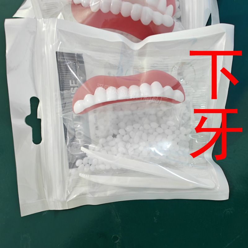 • [실리콘 모조 치아 스트립] OPP 하단 치아 스트립 + 5g 입자 1팩 + 설명서가 포함된 클립