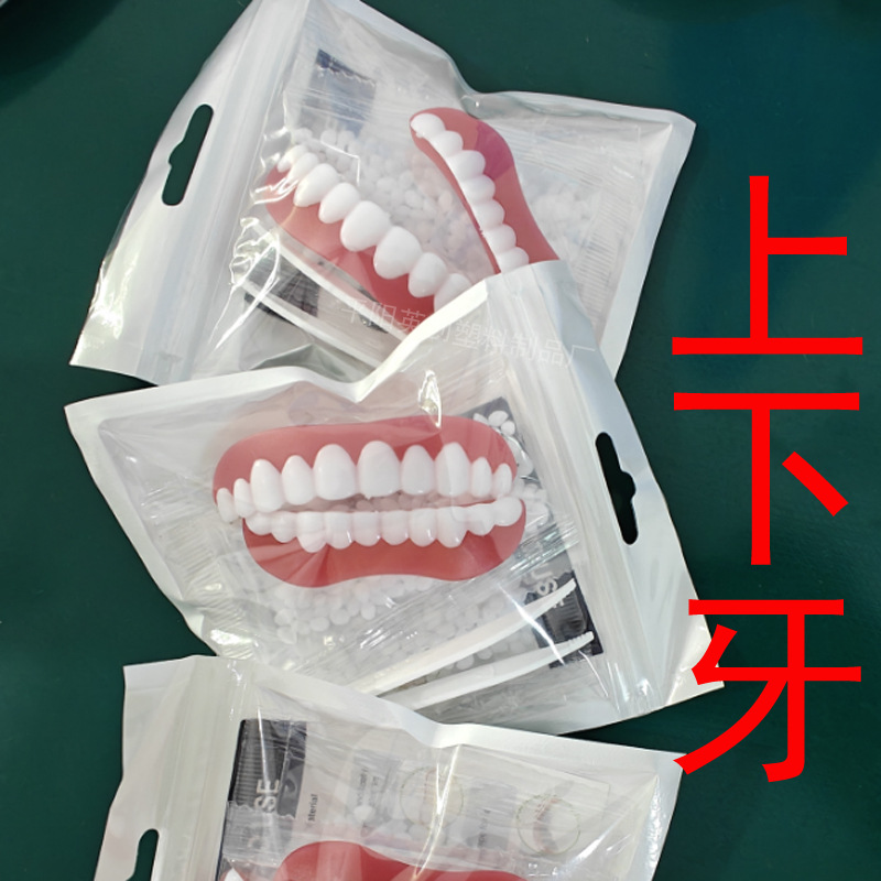 • [실리콘 모조 치아 스트립] OPP 상부 및 하부 치아 스트립 + 5g 입자 2팩 + 설명서가 포함된 클립