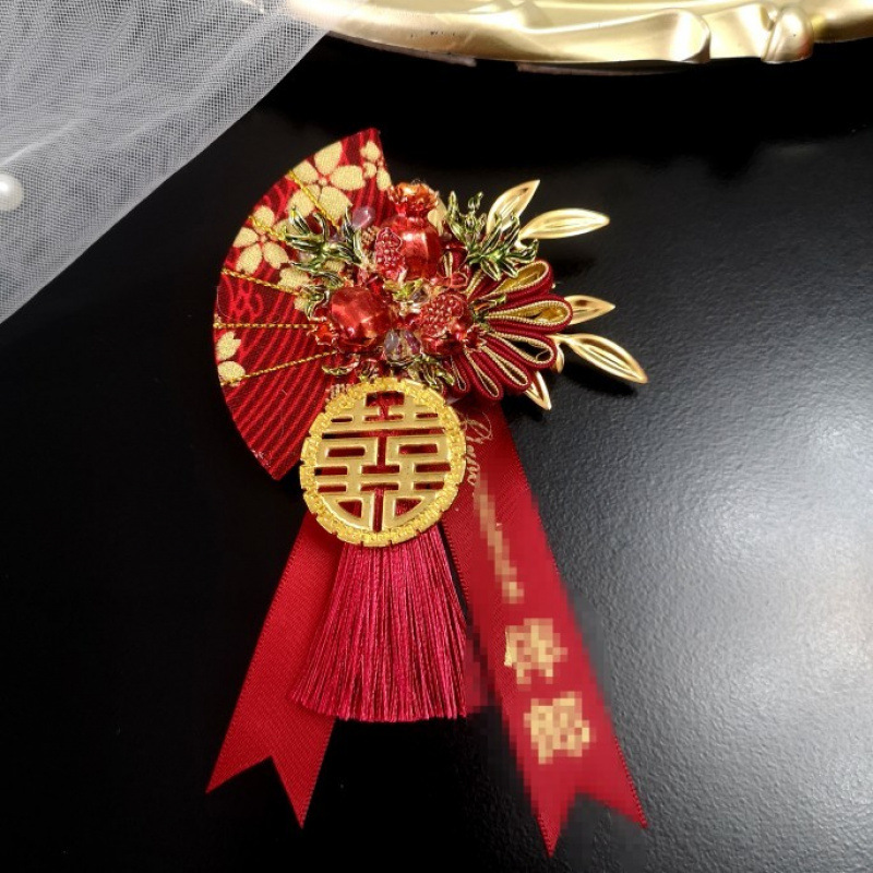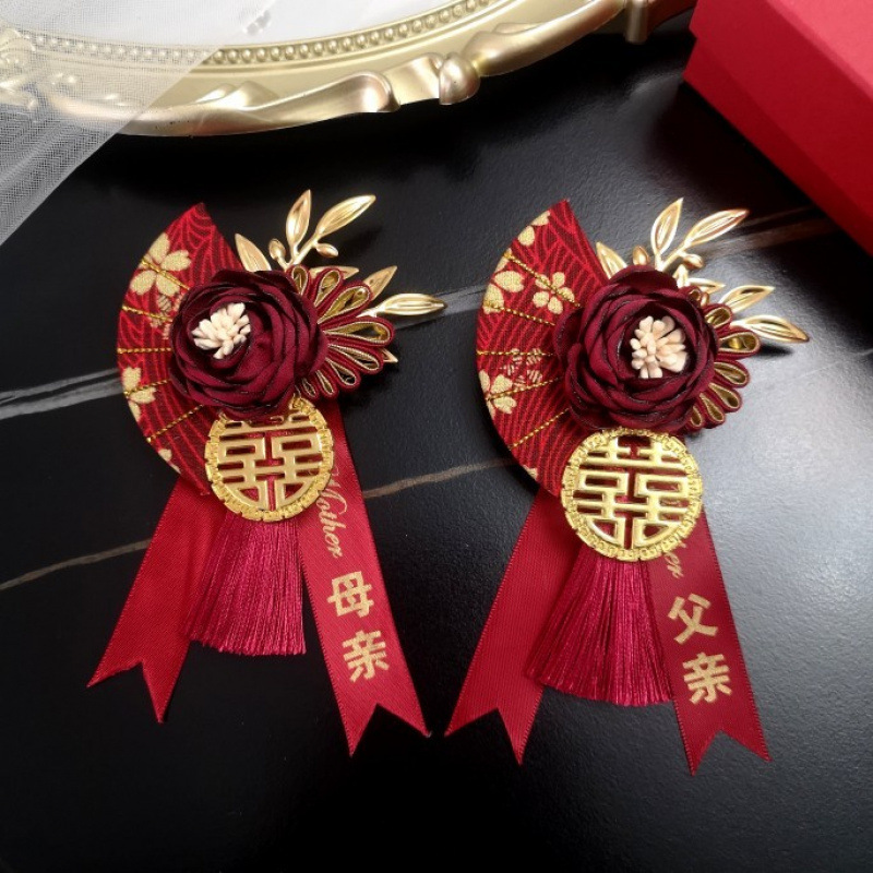 중공업 중국 스타일 Xiuhe 의류 신부의 결혼식 용과 피닉스 꽃 전체 가족 결혼식 Corsage 부모