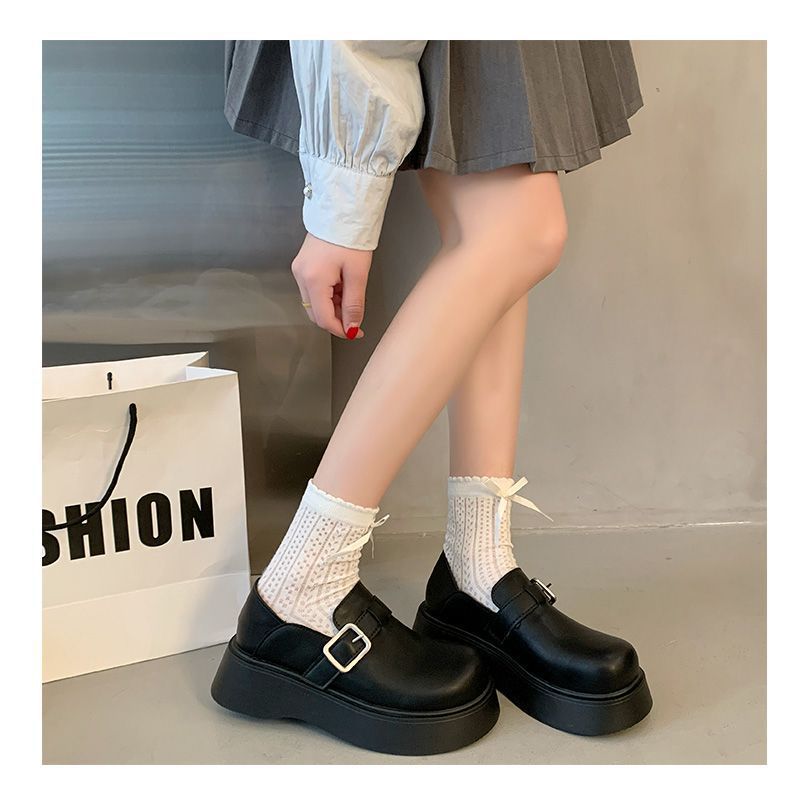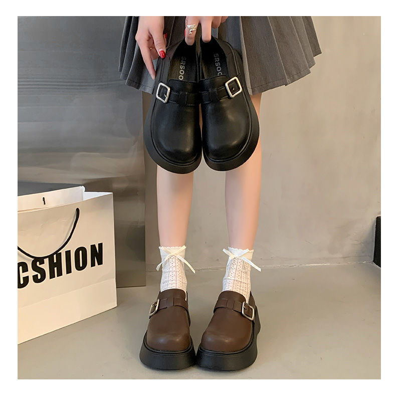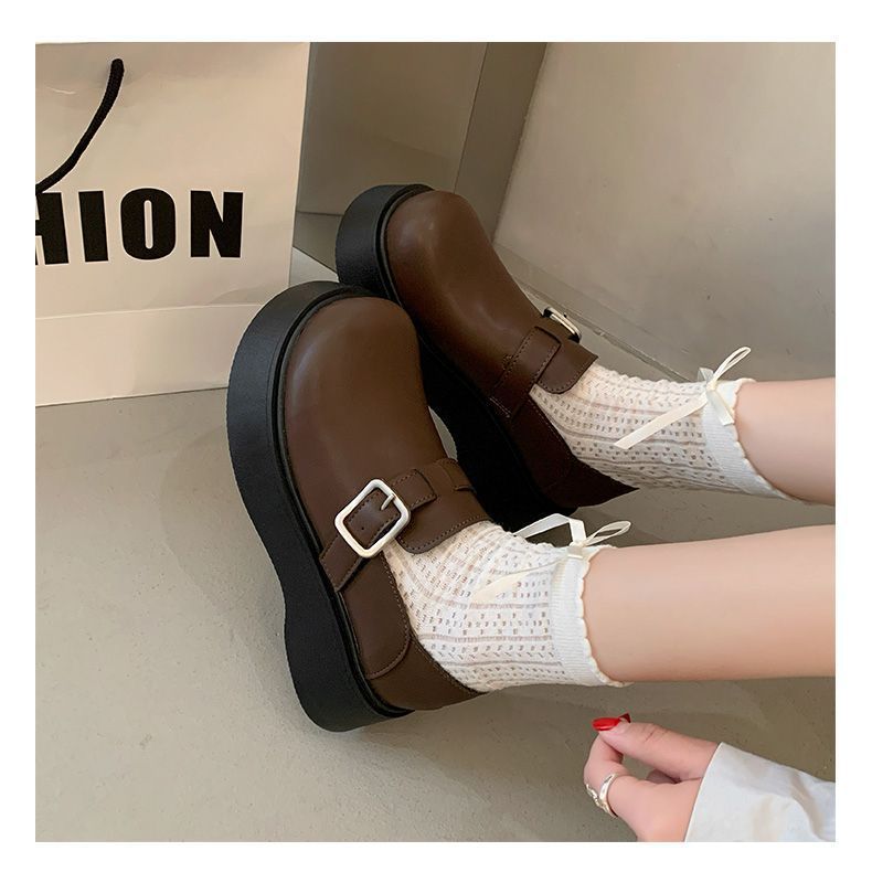 매트 레트로 블랙 영국 스타일 가죽 신발 여성의 2025 년 새로운 봄과 가을 두꺼운 밑창 올 매치 메리 제인 싱글 신발스토어 가기