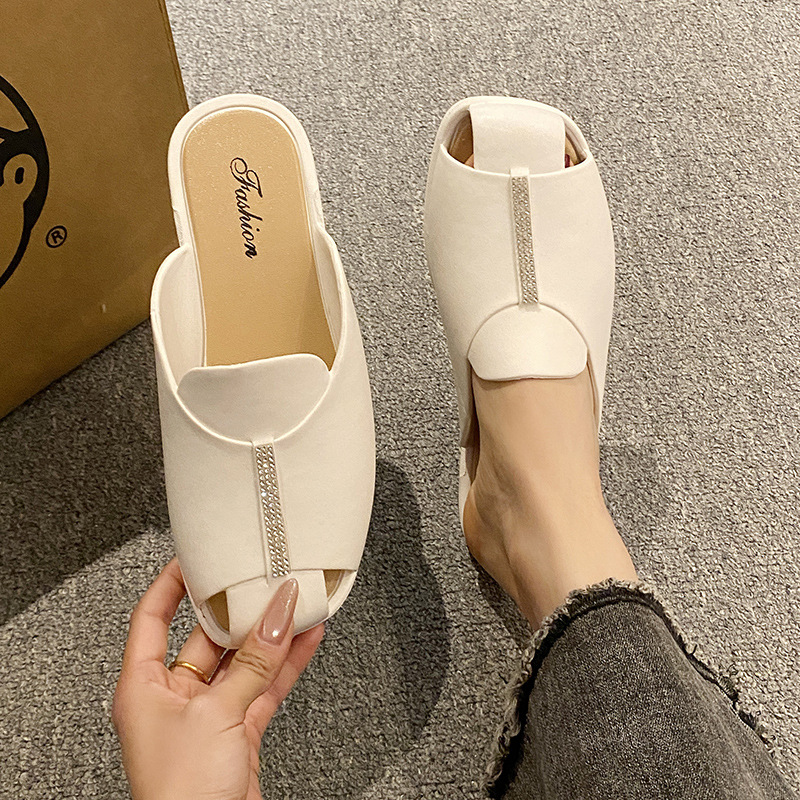 프렌치 레트로 바오 투 하프 슬리퍼 여성 여름 의류 유행 여름 여성 플랫 샌들 슬립 온 오픈 발가락 샌들스토어 가기