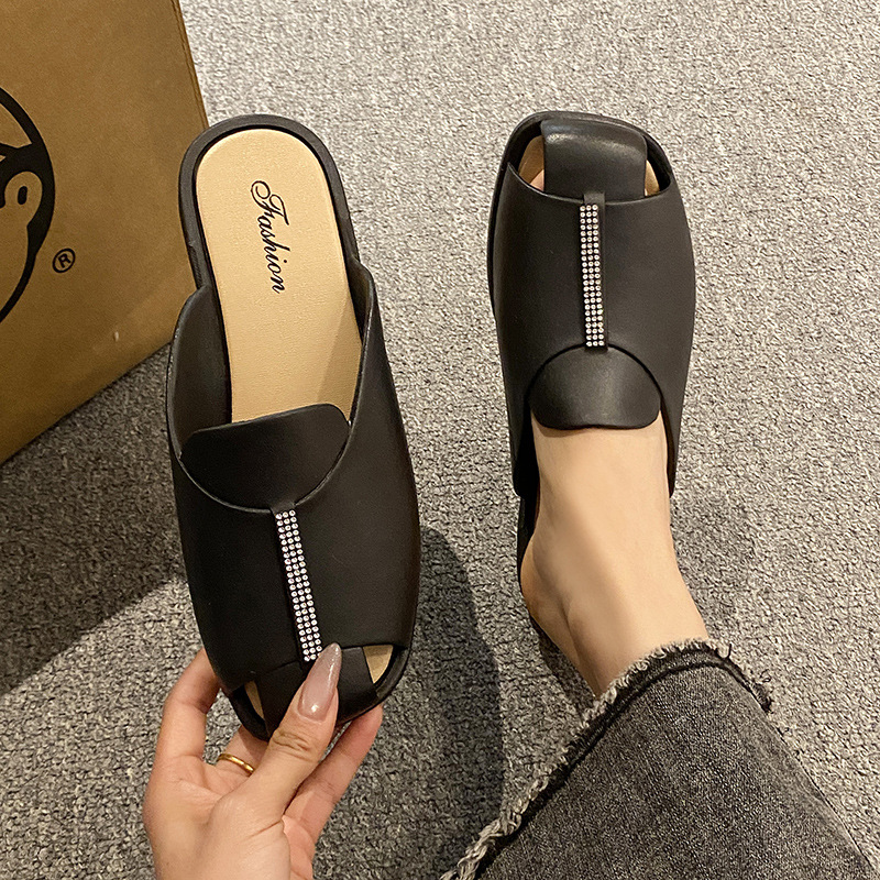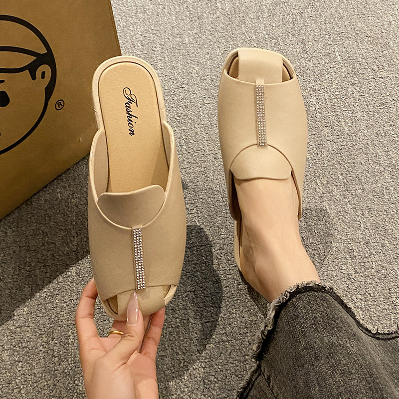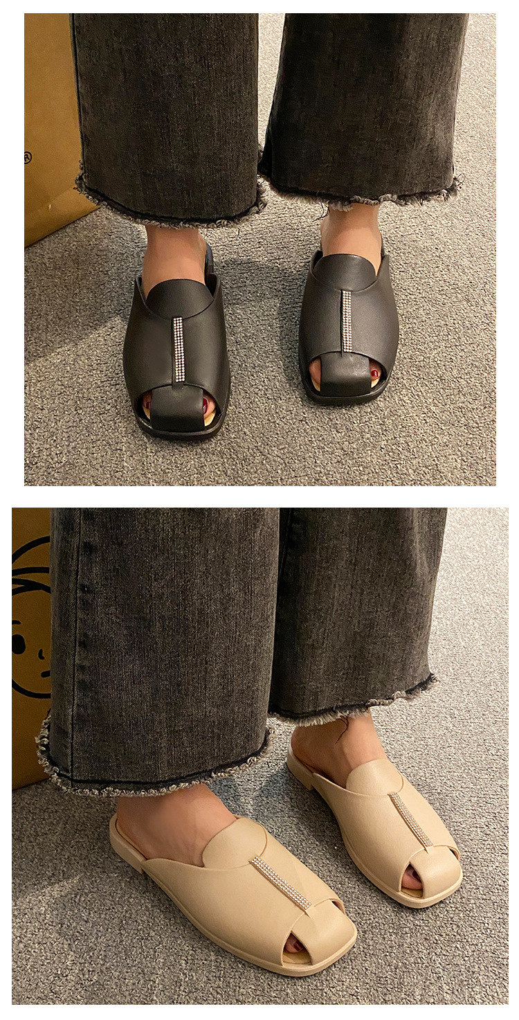 프렌치 레트로 바오 투 하프 슬리퍼 여성 여름 의류 유행 여름 여성 플랫 샌들 슬립 온 오픈 발가락 샌들