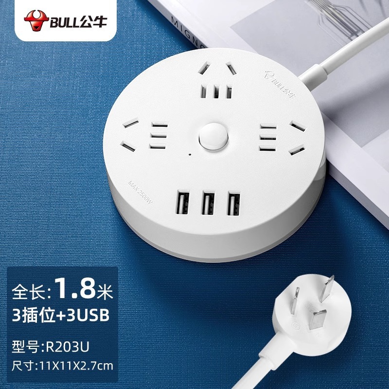 • 불 3위치 디스크 20W 고속 충전 +2USB+1C 포트-R203UQ/ 1.8m